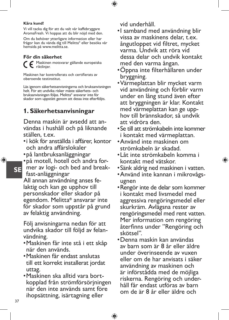 BRUKSANVISNING AROMAFRESH 1030-05 MELITTA