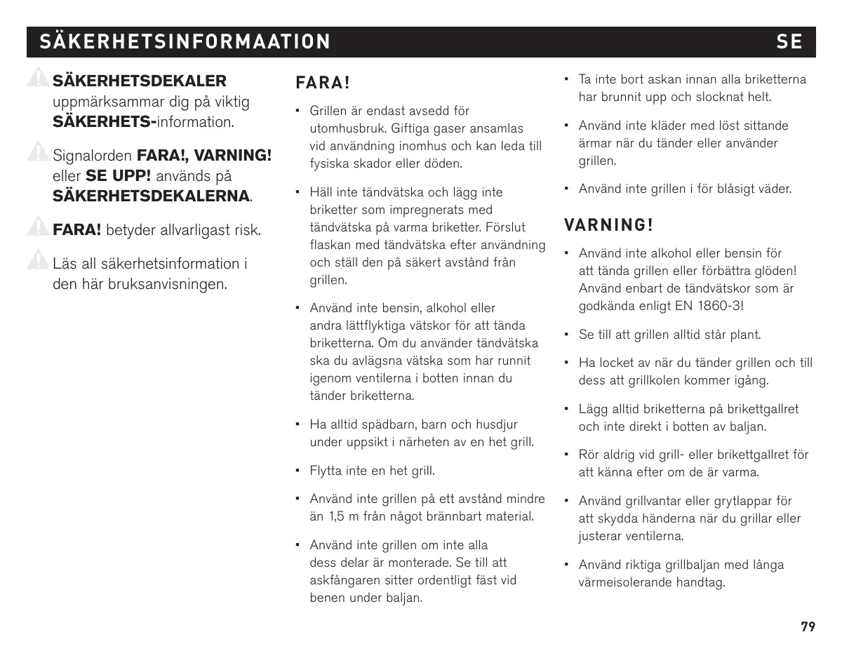 + Ne portez pas de vêtements avec des manches larges et flottantes lors de l'allumage et de l’utilisation du barbecue