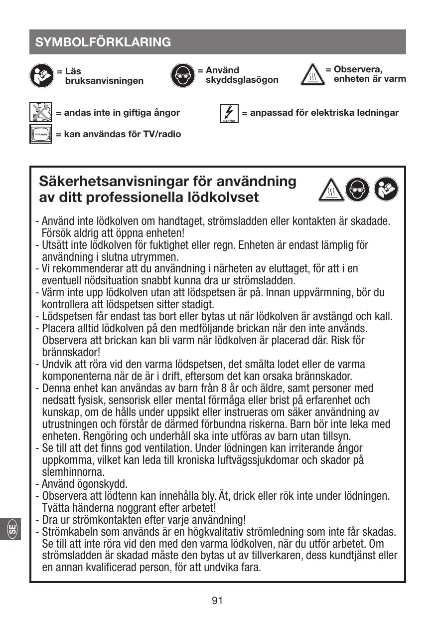 - Le fil de brasage peut contenir du plomb. Ne pas manger, boire ou fumer pendant le brasage. Impérativement se laver soigneusement les mains après le travail !