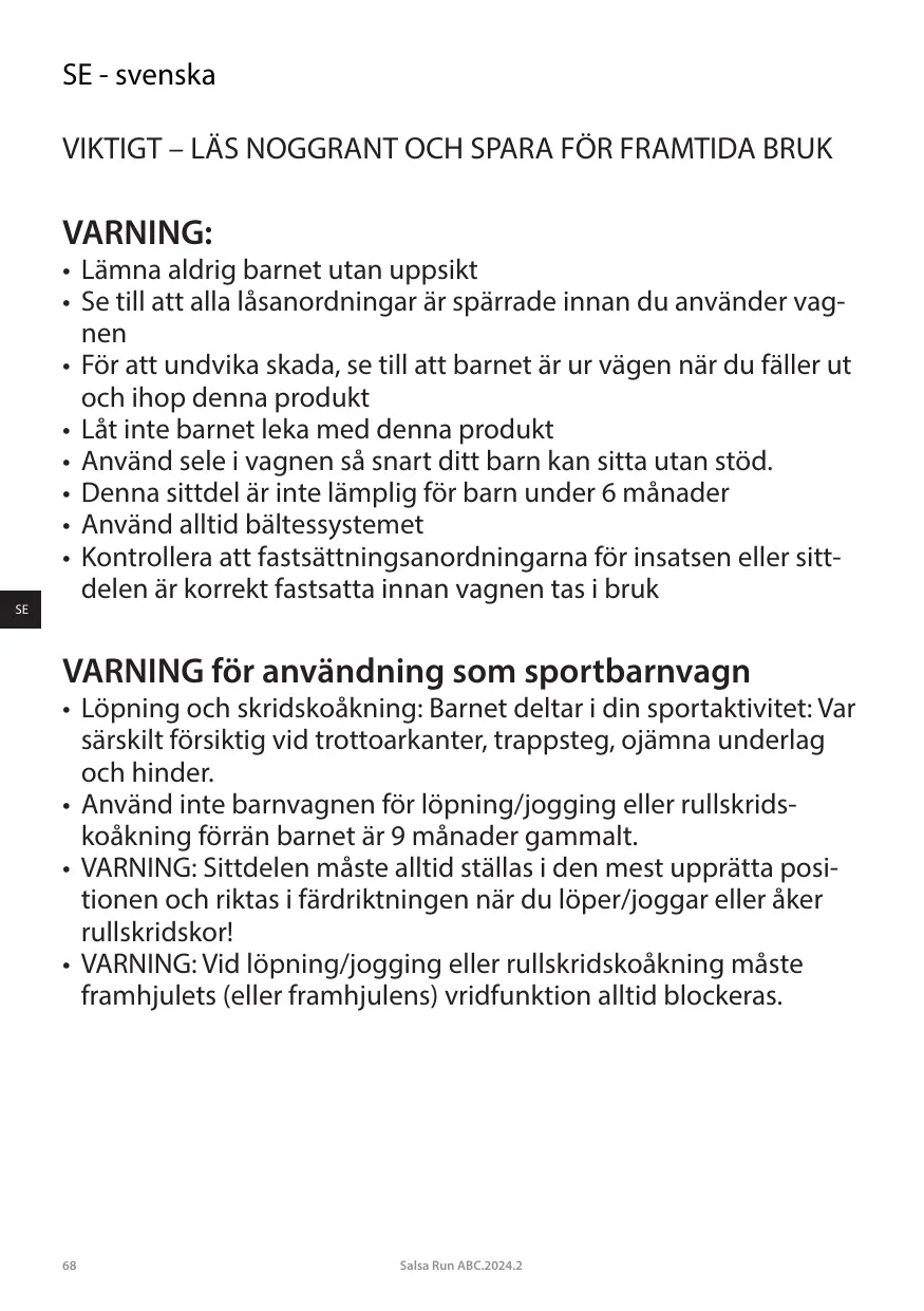 BRUKSANVISNING SALSA RUN ABC DESIGN
