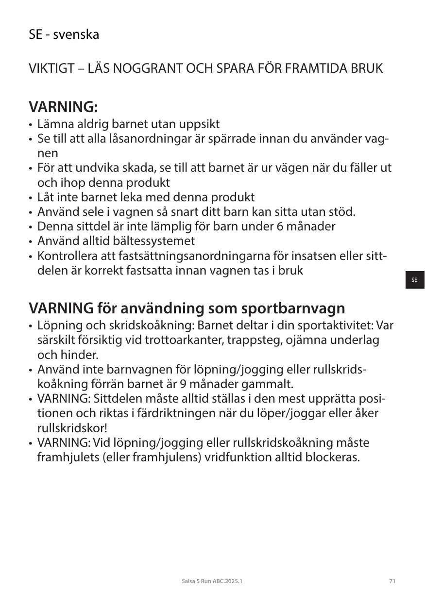 BRUKSANVISNING SALSA 5 RUN ABC DESIGN