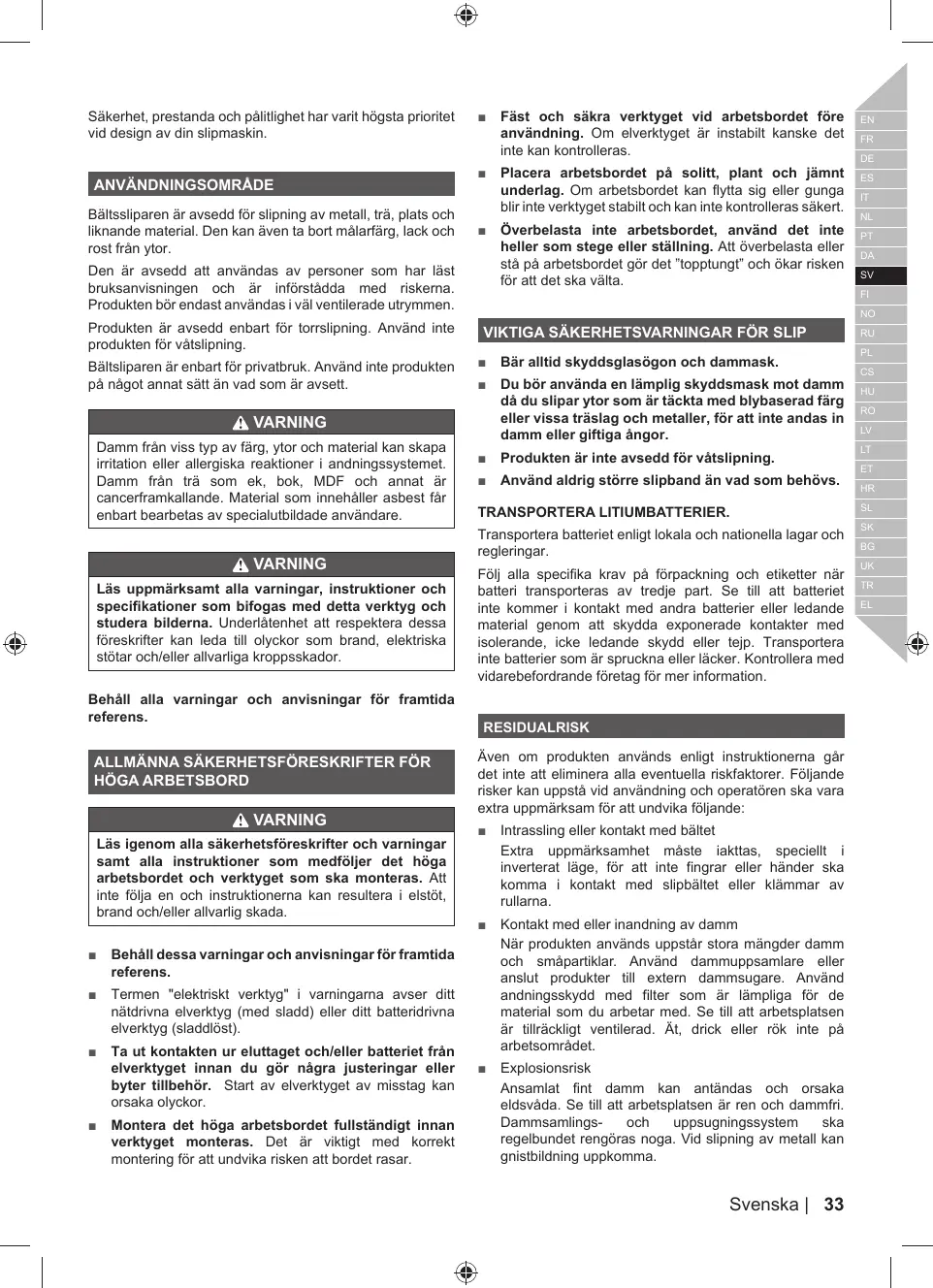 AVERTISSEMENTS DE SECURITE RELATIFS A PONCEUSE À BANDE