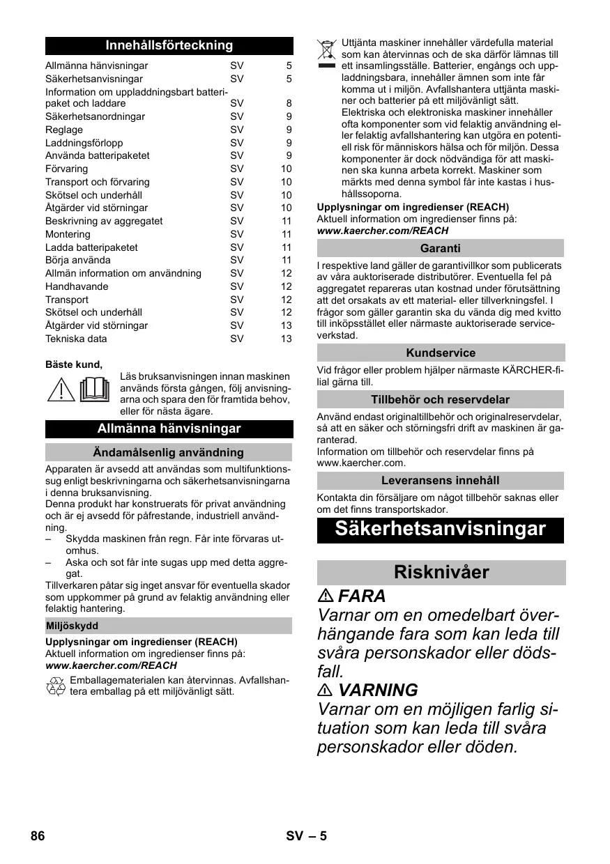 Almacenamiento ES 10 Transporte y almacenamiento ES 10 Cuidados y mantenimiento ES 10 Ayuda en caso de averia ES 10 www.kaercher.com/REACH LA; Los materiales empleados para el embalaje son