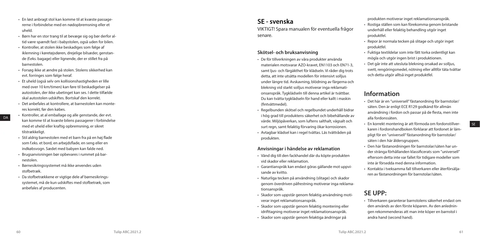 - Tillverkaren garanterar barnstolens säkerhet endast om den används av den fôrste kôparen. Av den anlednin- gen rekommenderas att man inte kôper en barnstol andra hand (second hand),