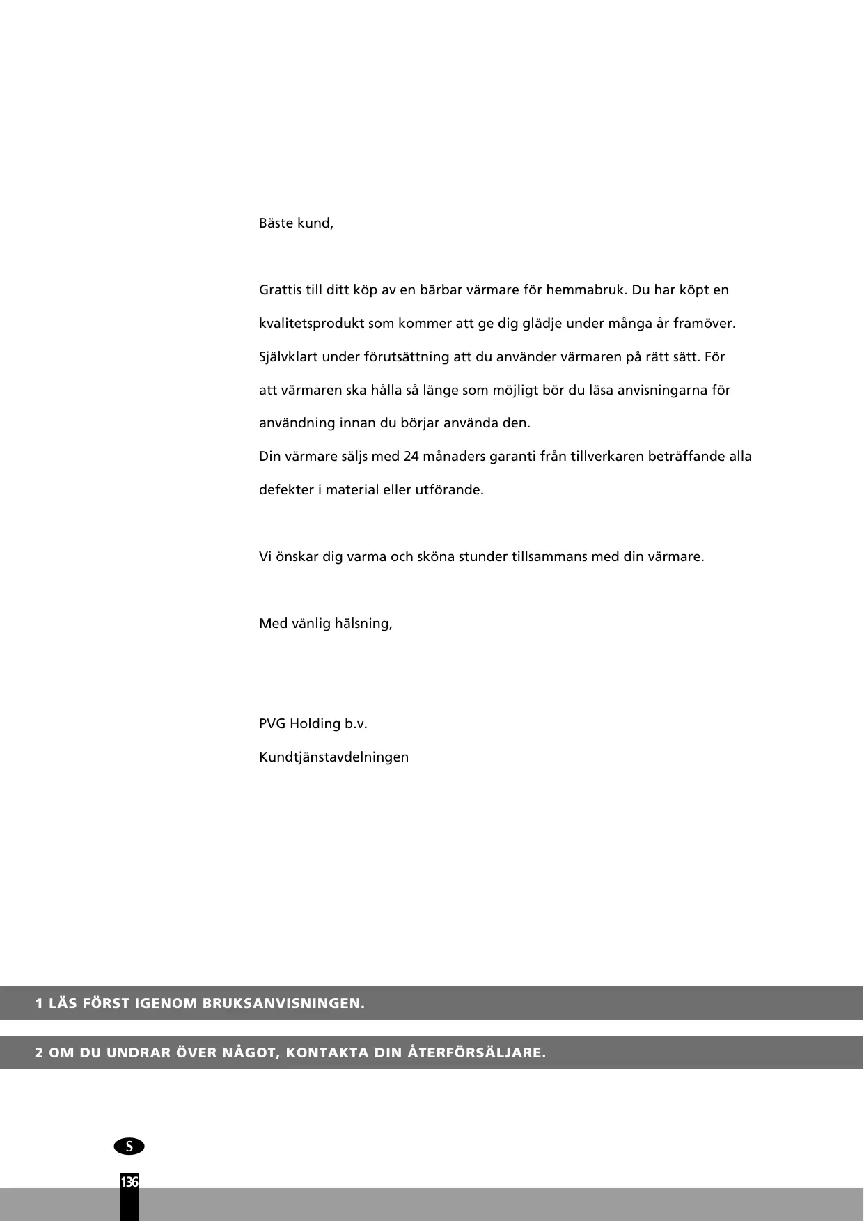 CE Denna värmare kan inte vara päslagen oavbrutet i mer än 36 timmar. Efter 36