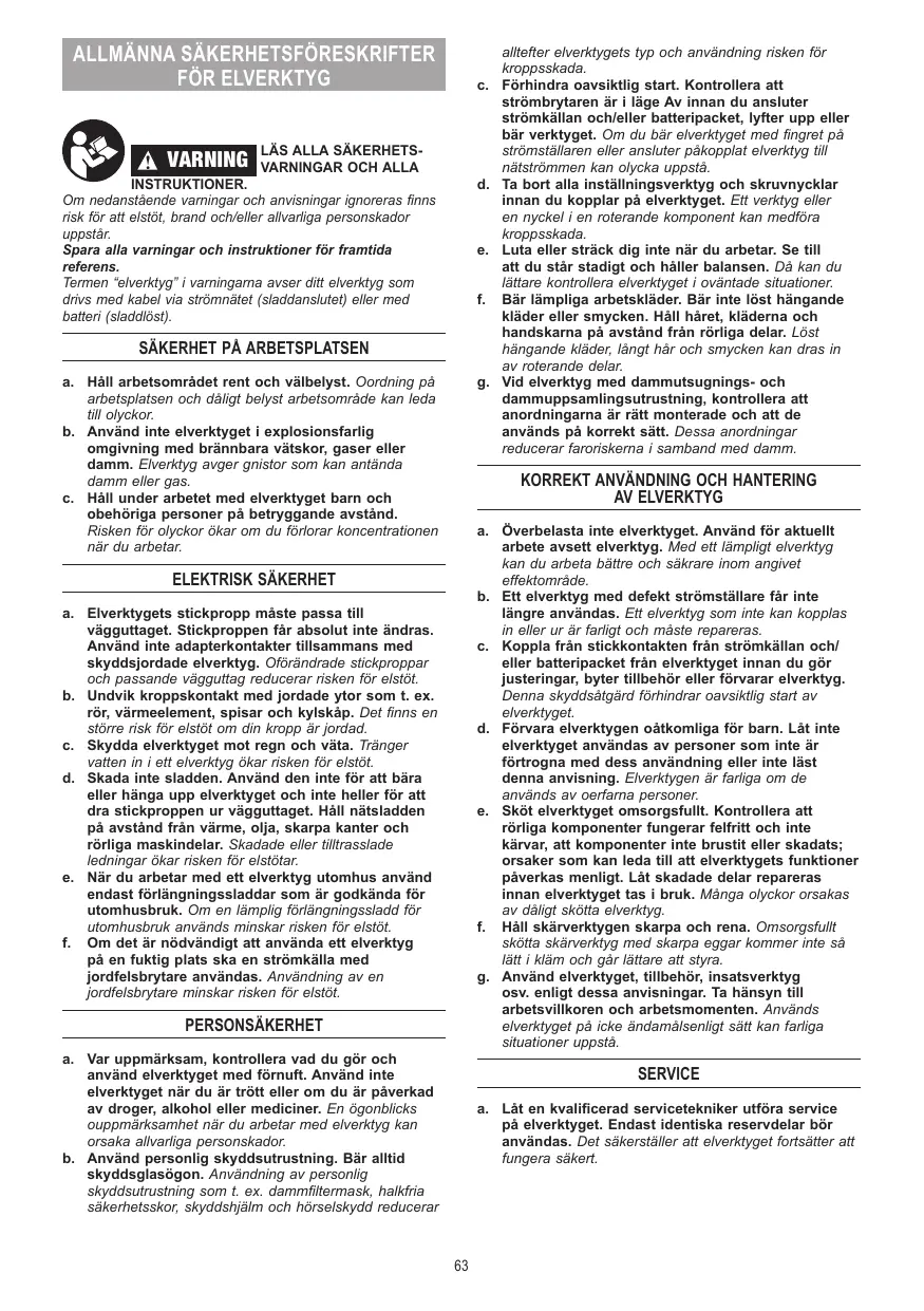 ©. Après avoir changé d'embouts ou effectué des réglages, assurez-vous que l’écrou de la pince, le mandrin ou tout autre dispositif de réglage est fermement serré. Des dispositifs de réglages desserrés peuvent glisser de manière intempestive, entraînant une perte de contrôle et une éjection violente des composants en rotation desserrés.