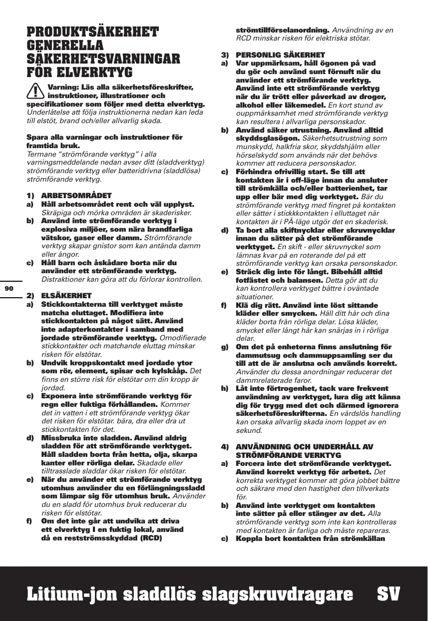 AVERTISSEMENT DE SÉCURITÉ CONCERNANT LA VISSEUSE À PERCUSSION Tenez l'outil par ses surfaces de préhension, lors de l'exécution d'une opération où la fixation pourrait toucher des câbles électriques cachés. Si les parties externes en métal entrent en contact avec un fil