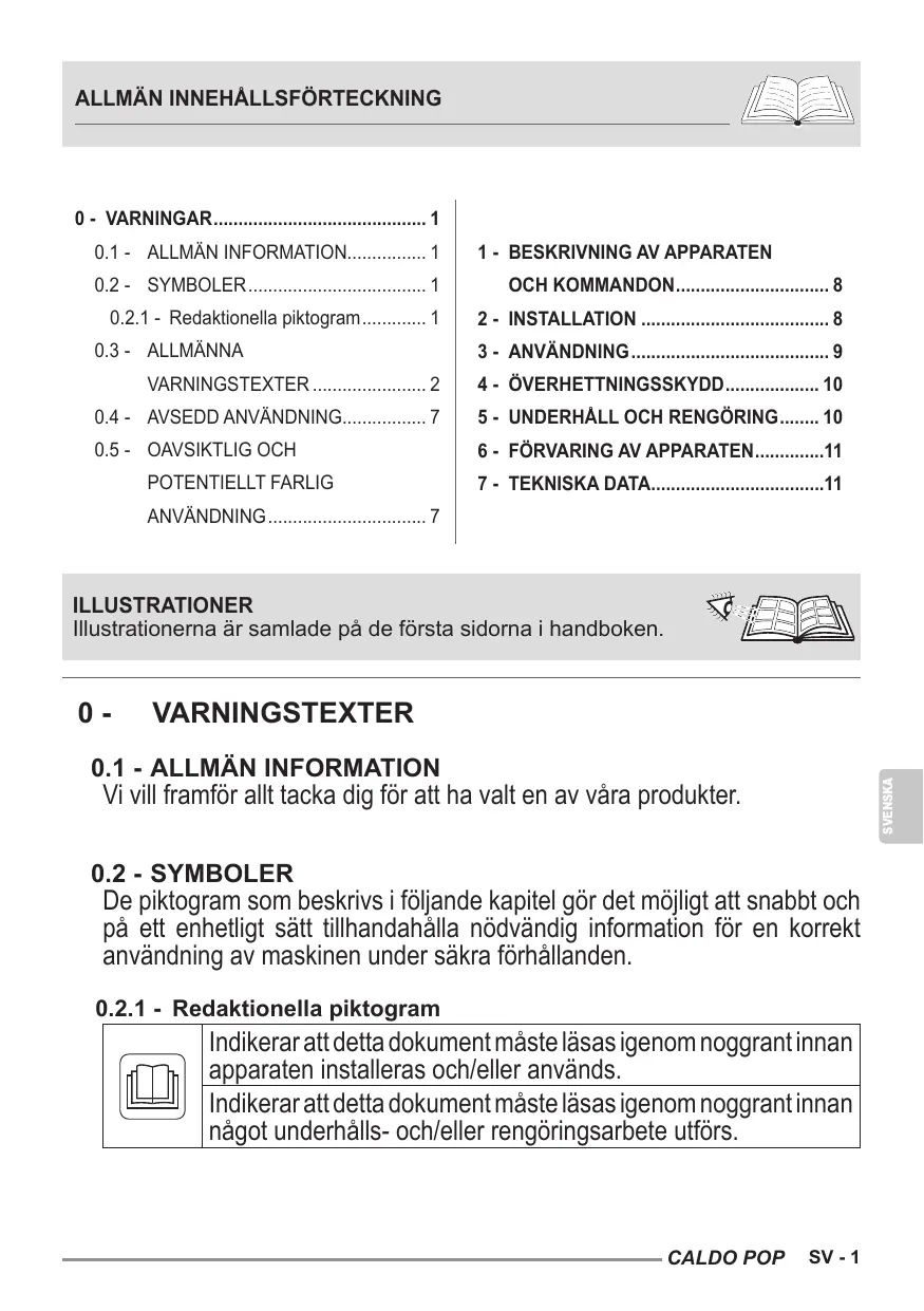 BRUKSANVISNING CALDO POP OLIMPIA SPLENDID