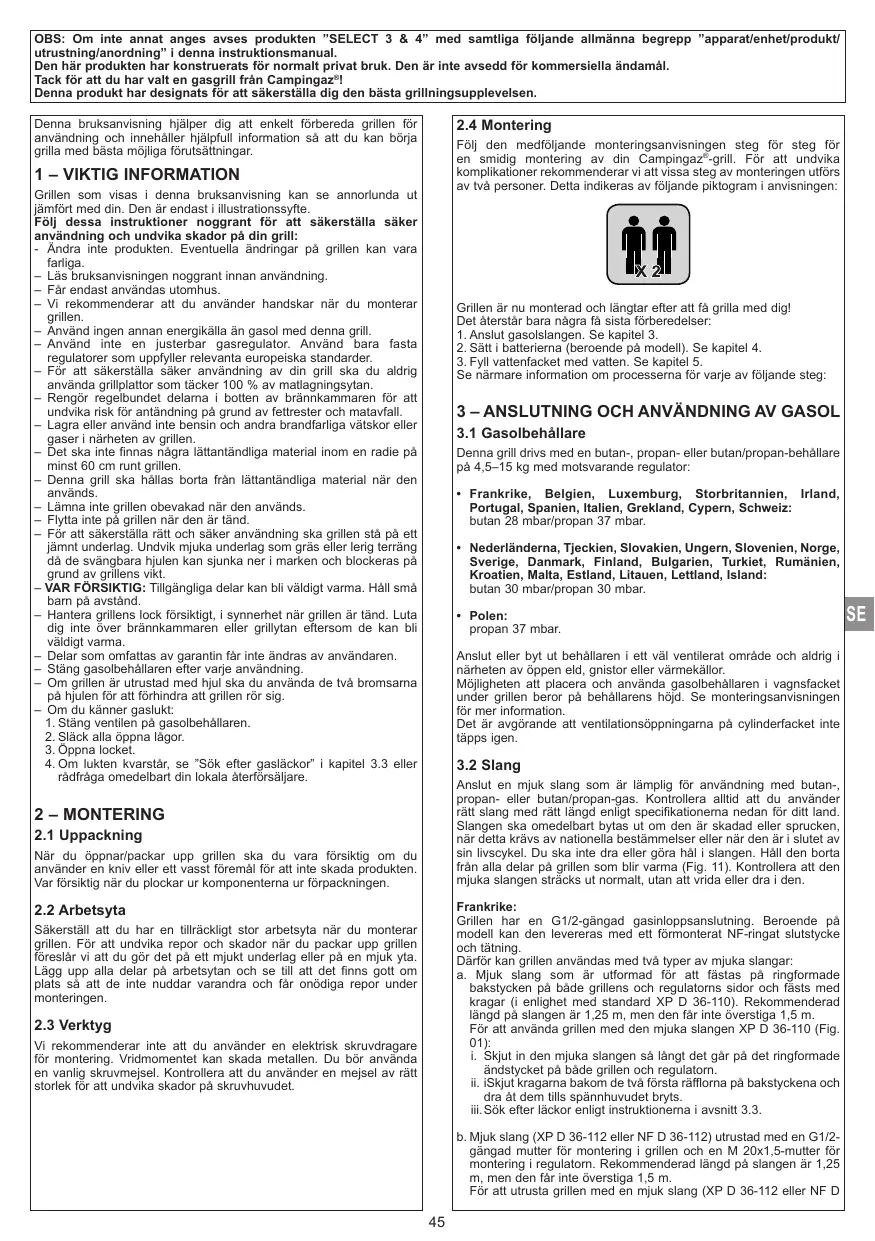 BRUKSANVISNING SELECT 3 LX PLUS CAMPINGAZ