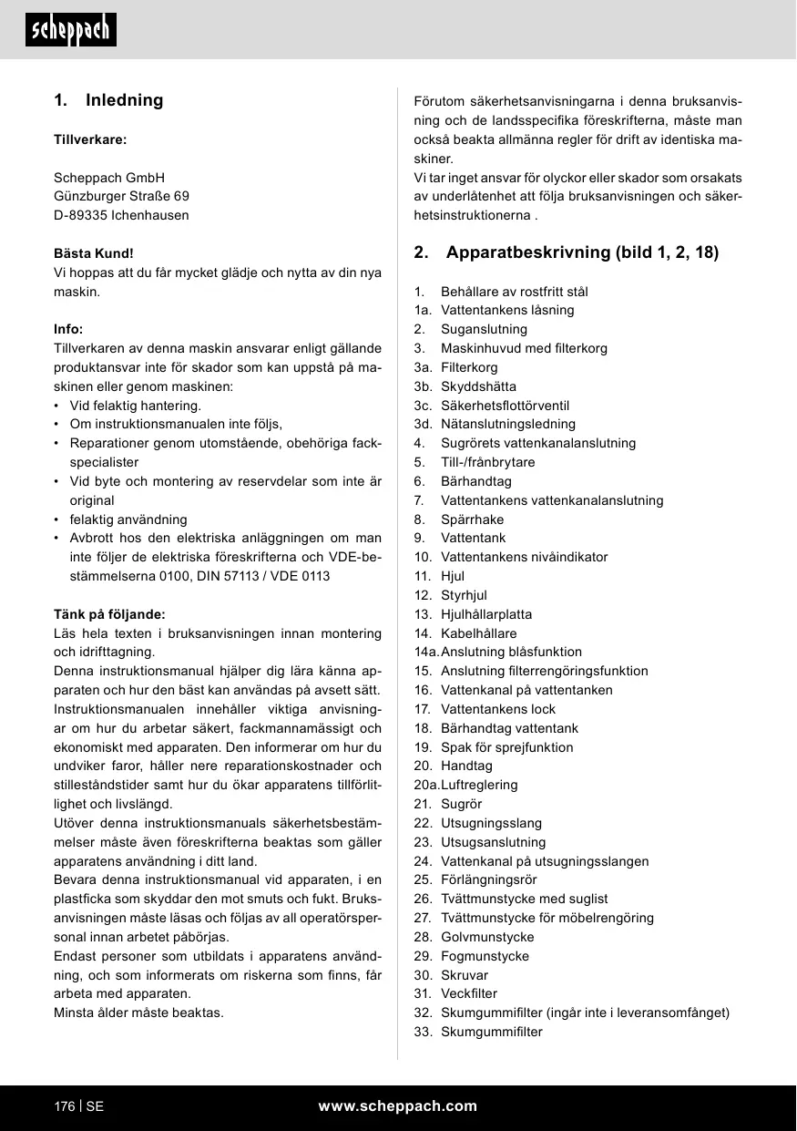 BRUKSANVISNING SPRAYVAC20 SCHEPPACH