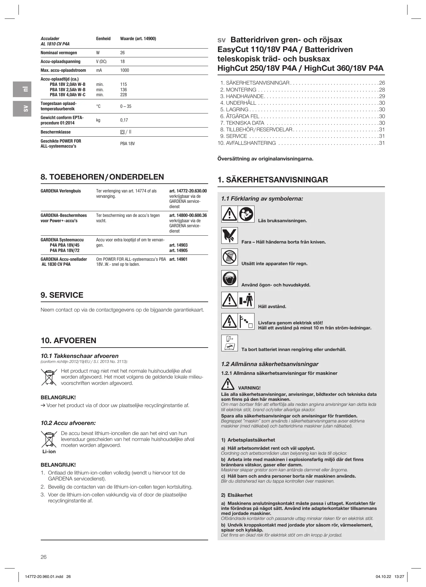 BRUKSANVISNING EasyCut 110/18V P4A, HighCut 250/18V P4A, HighCut 360/18V P4A GARDENA