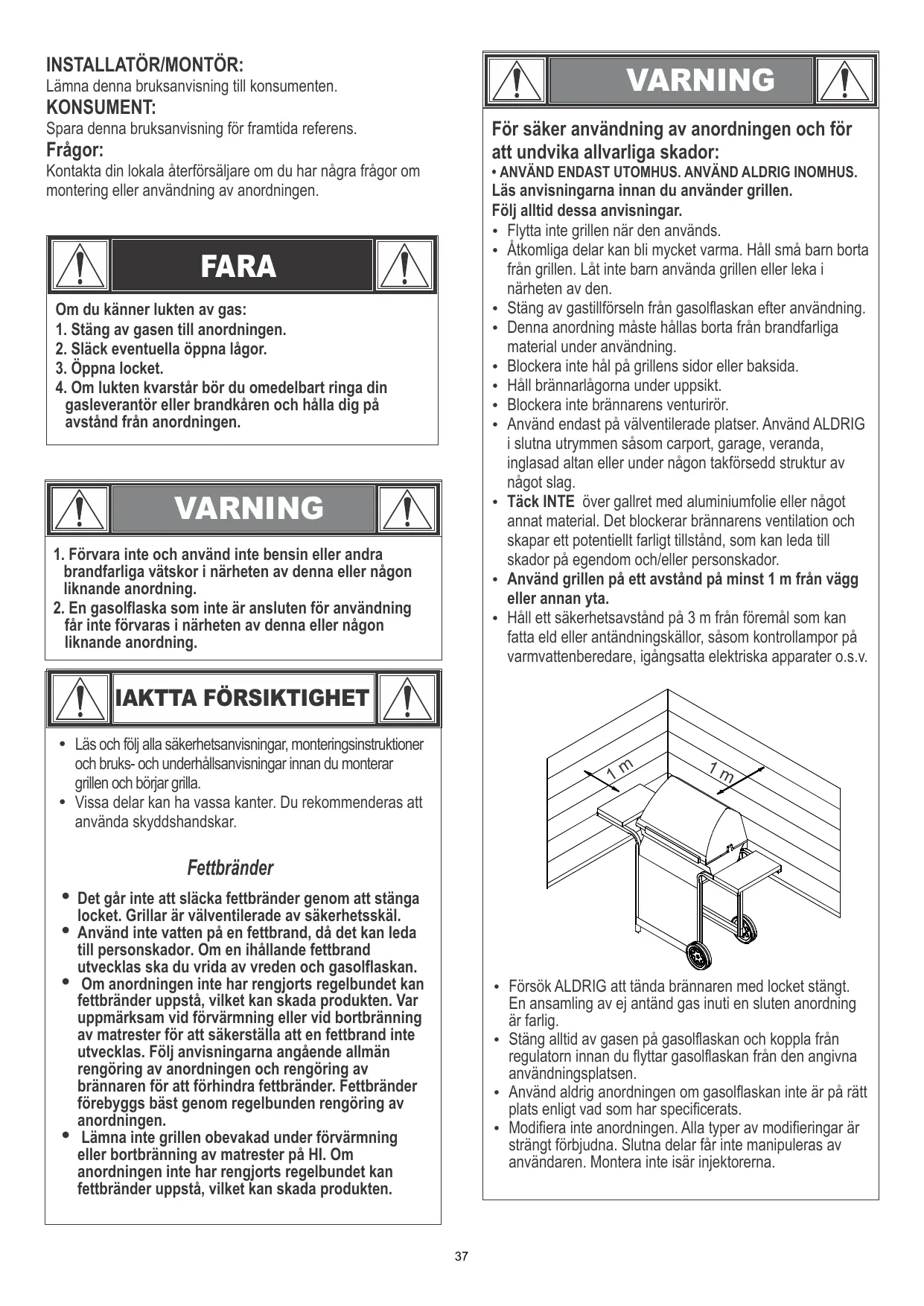 + Du màikke bruke gassbrennere lengre enn 15 minutter dersom du bruker trekull.