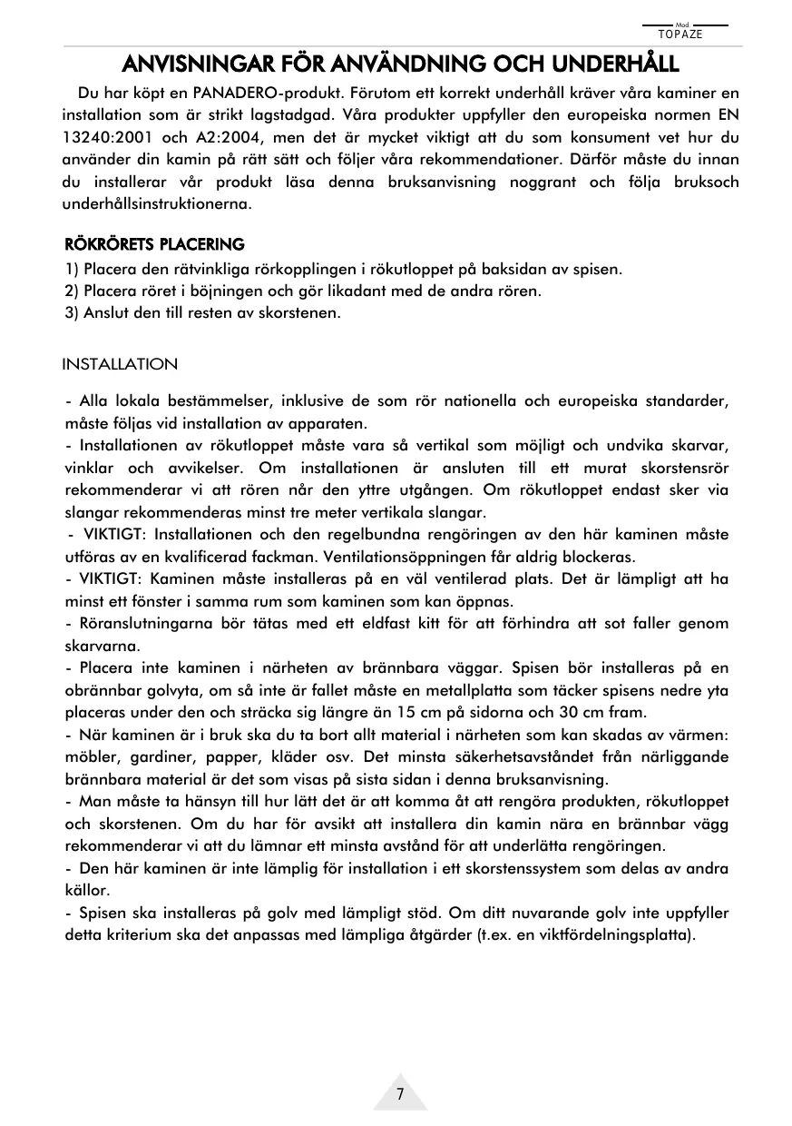 TOPAZE - Vedspis PANADERO - Notice d'utilisation et mode d'emploi gratuit