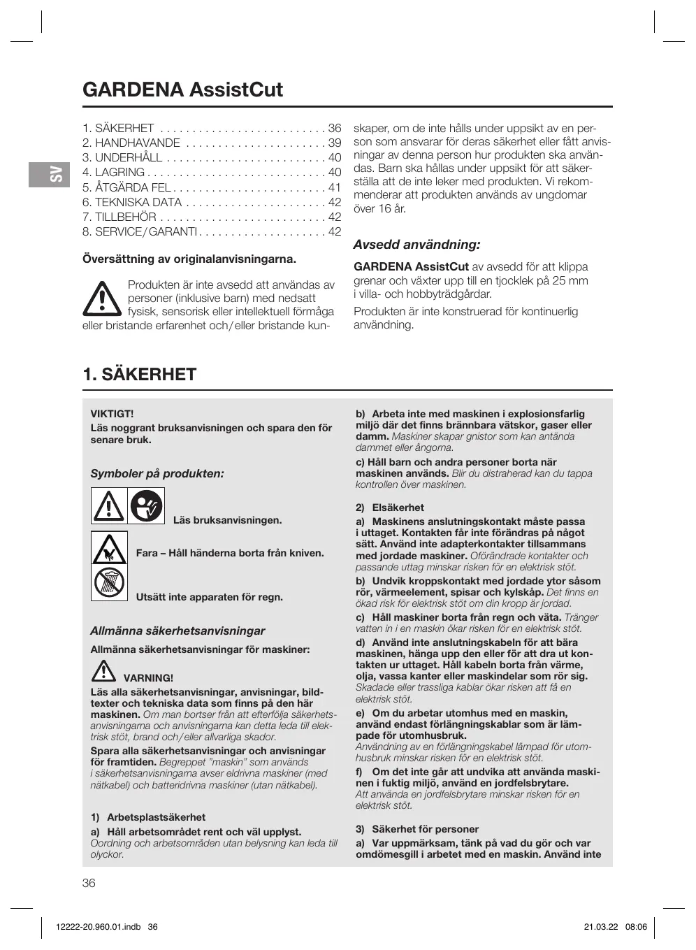 BRUKSANVISNING 12222 GARDENA