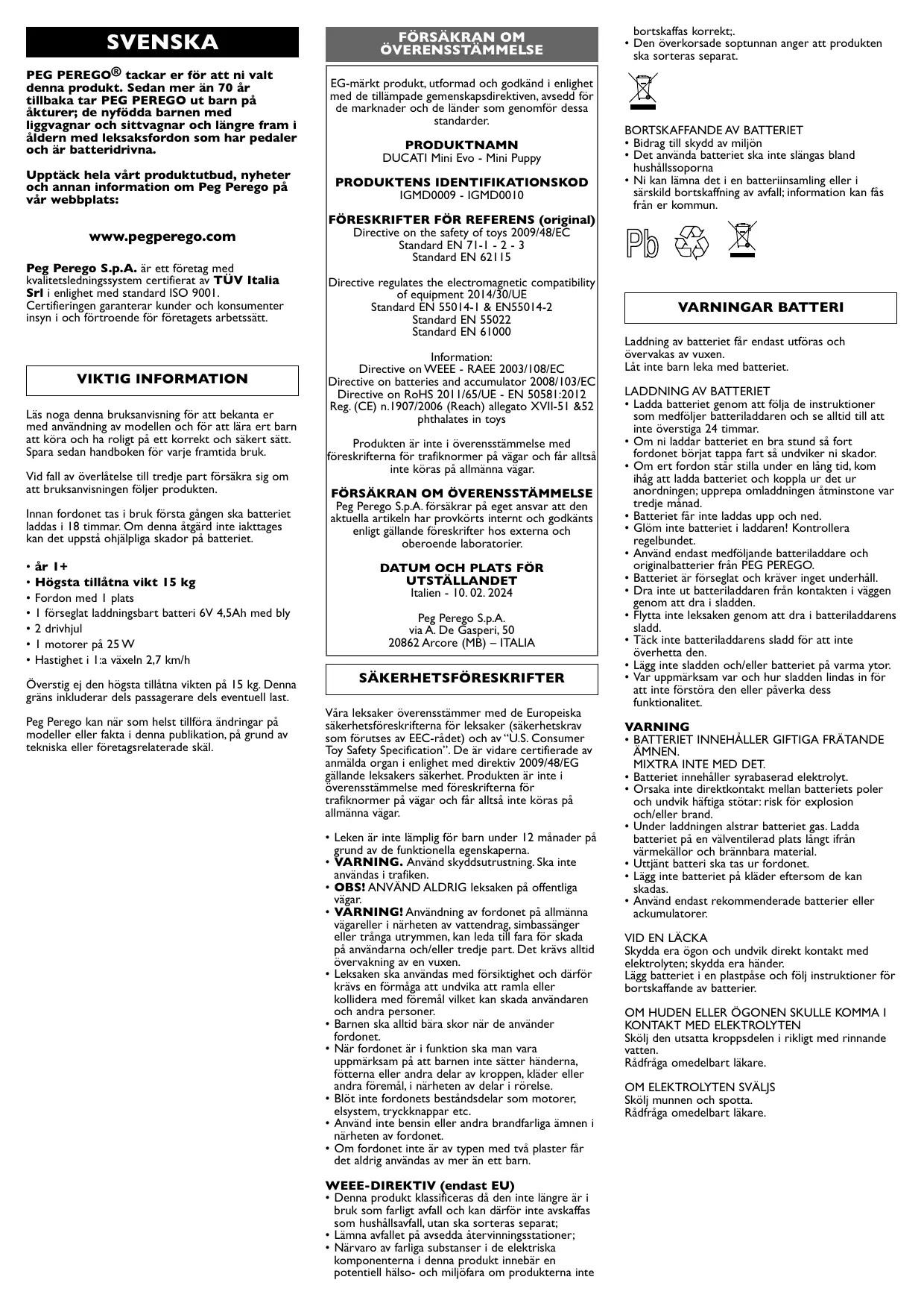 Téléchargez la notice de votre MOTO POUR ENFANT au format PDF gratuitement ! Retrouvez votre notice Mini Puppy - PEG PEREGO et reprennez votre appareil électronique en main. Sur cette page sont publiés tous les documents nécessaires à l'utilisation de votre appareil Mini Puppy de la marque PEG PEREGO.