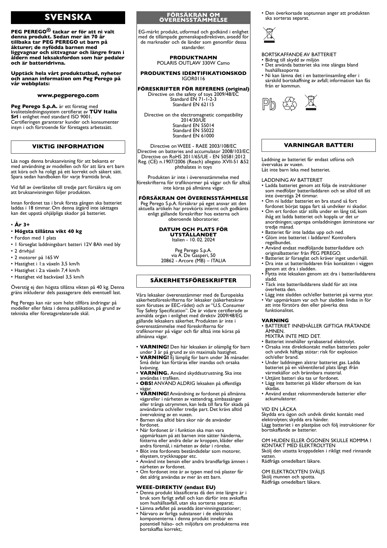 Polaris Outlaw 330W Camo - TOUT TERRAIN PEG PEREGO - Notice d'utilisation et mode d'emploi gratuit