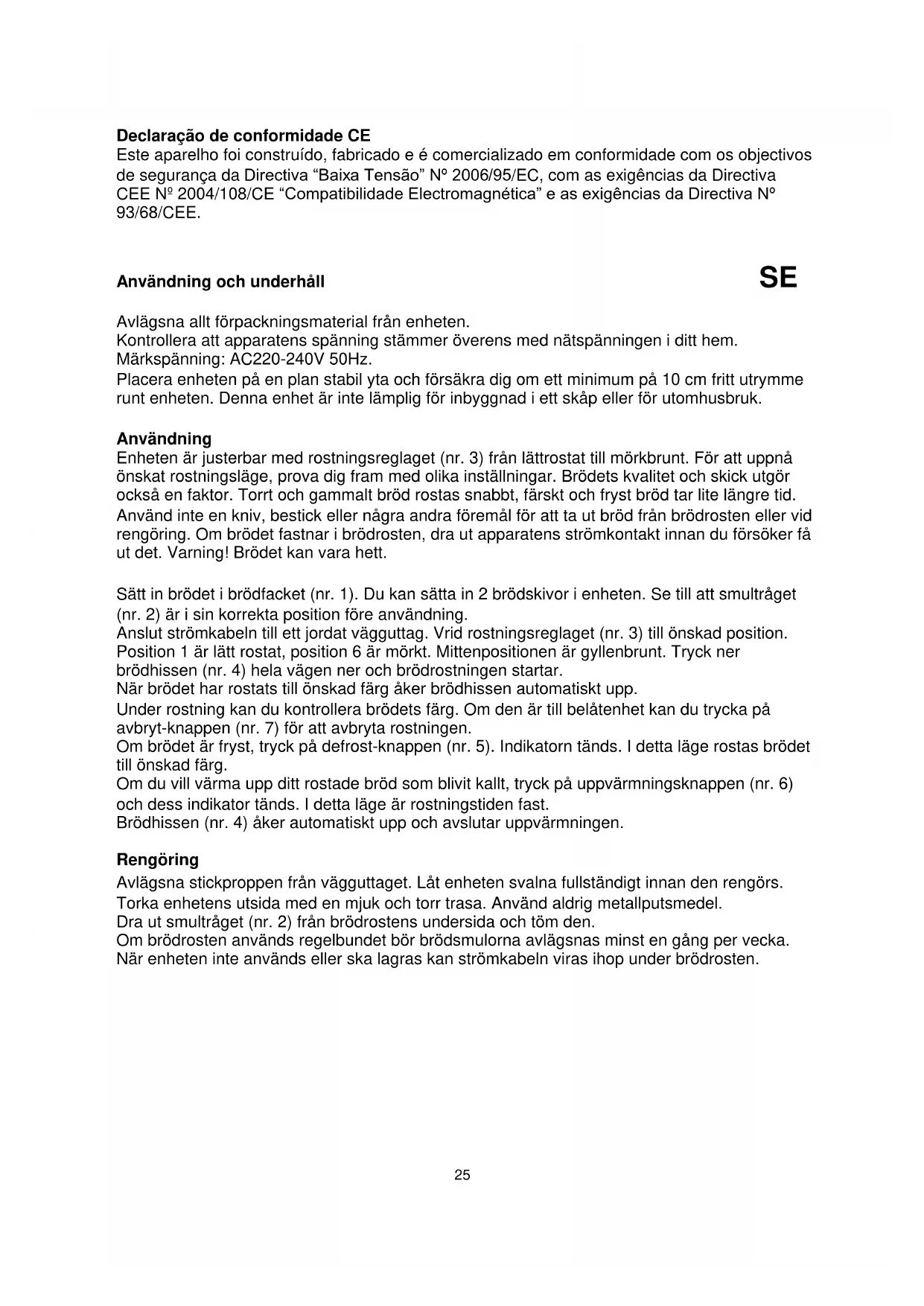 rengöring. Om brödet fastnar i brödrosten, dra ut apparatens strömkontakt innan du försöker få