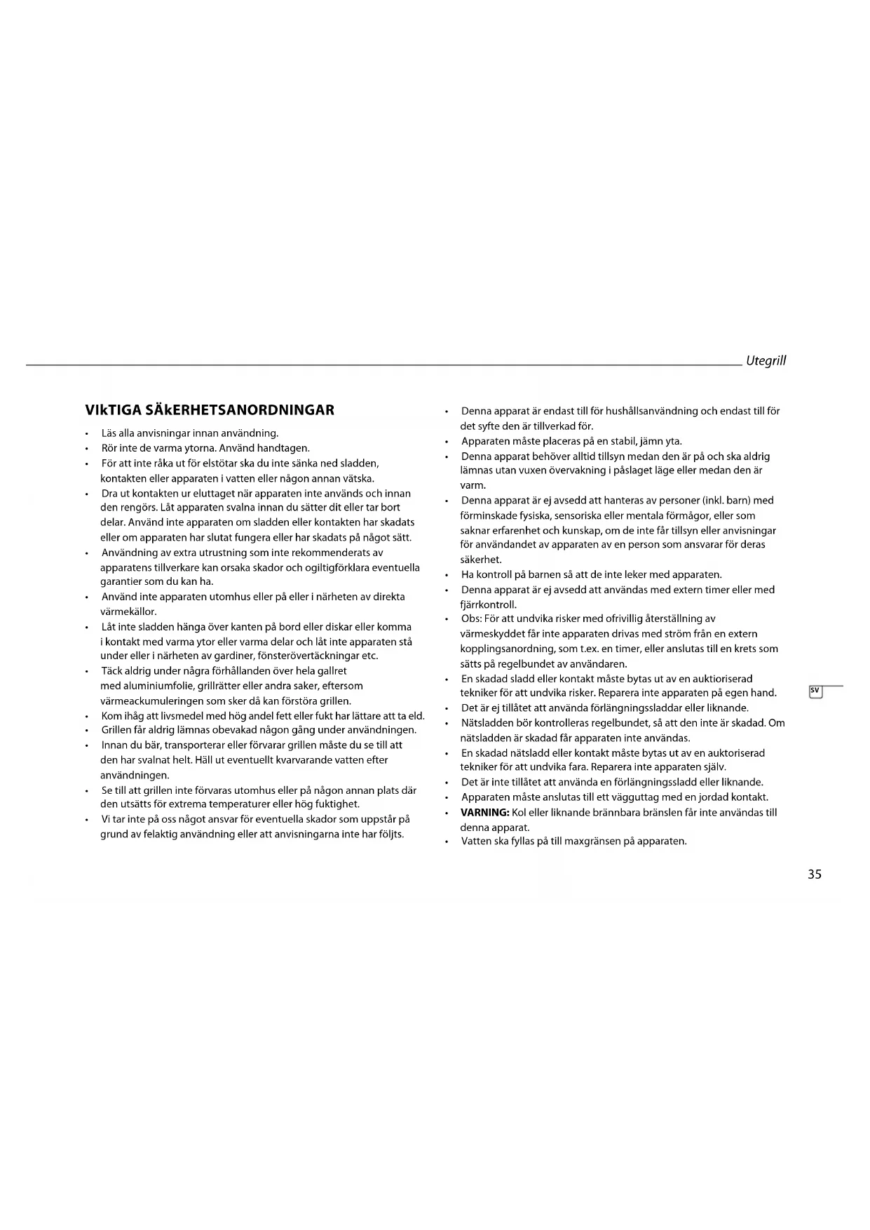 • Grillenfåraldriglämnasobevakadnågongångunderanvändningen.