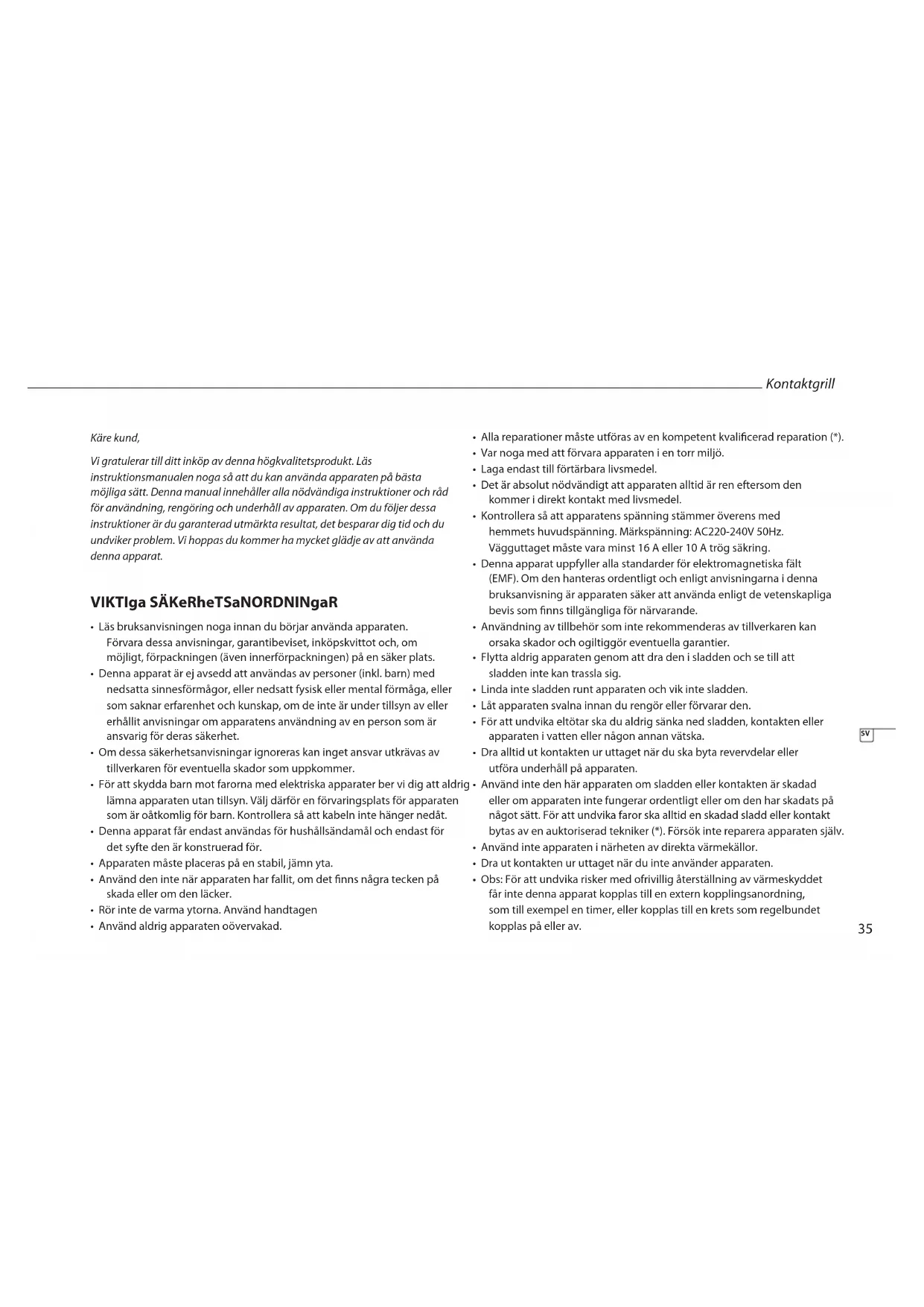 • Om dessa säkerhetsanvisninwar iwnoreras kan inwet ansvar utkrävas av