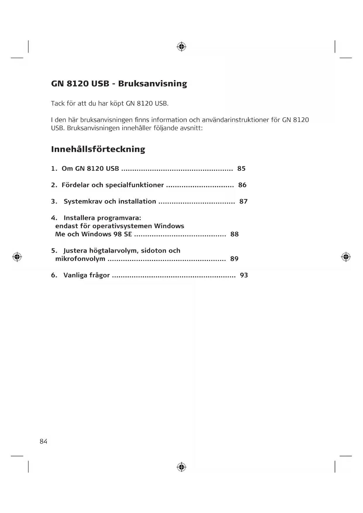 varje funktion i den separata bruksanvisningen som medföljer GN 8120 USB förpack-