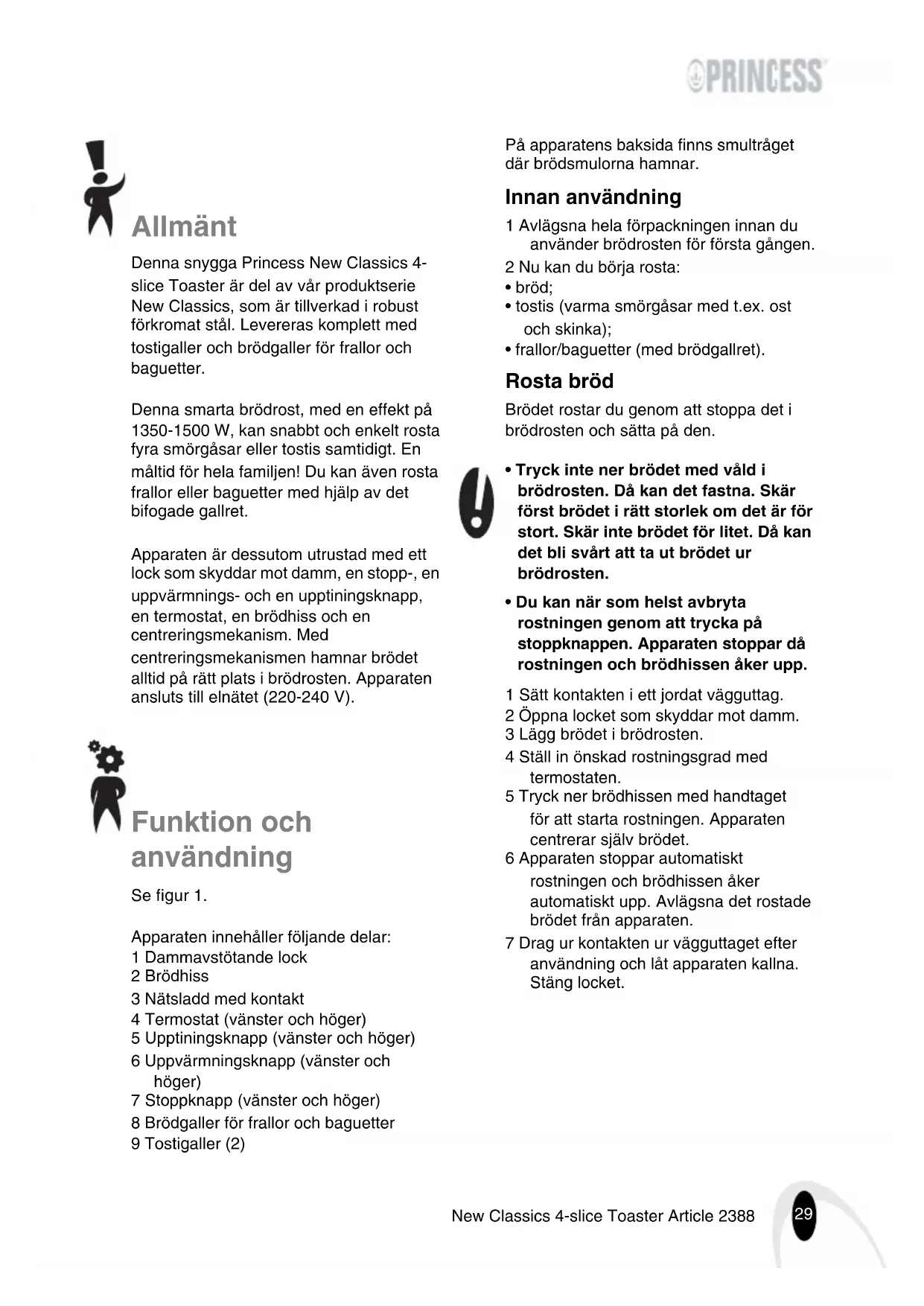 142388 - Brödrost PRINCESS - Notice d'utilisation et mode d'emploi gratuit