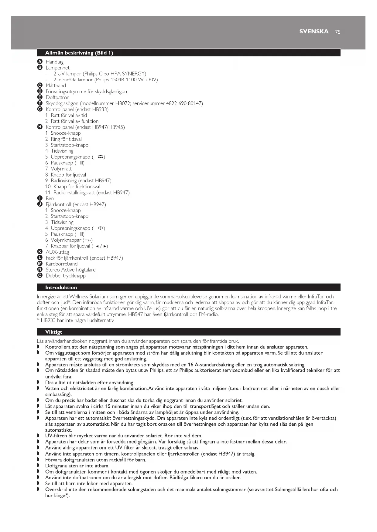 Ladda ner instruktionerna för din Banc solaire i PDF-format gratis! Hitta din manual Innergize HB945 - PHILIPS och ta tillbaka ditt elektroniska enhet i hand. På denna sida publiceras alla dokument som behövs för att använda din enhet. Innergize HB945 av märket PHILIPS.