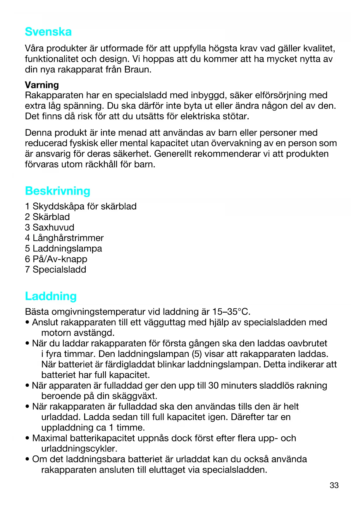 Ladda sedan rakapparaten till full kapacitet. Exponera inte rakapparaten för