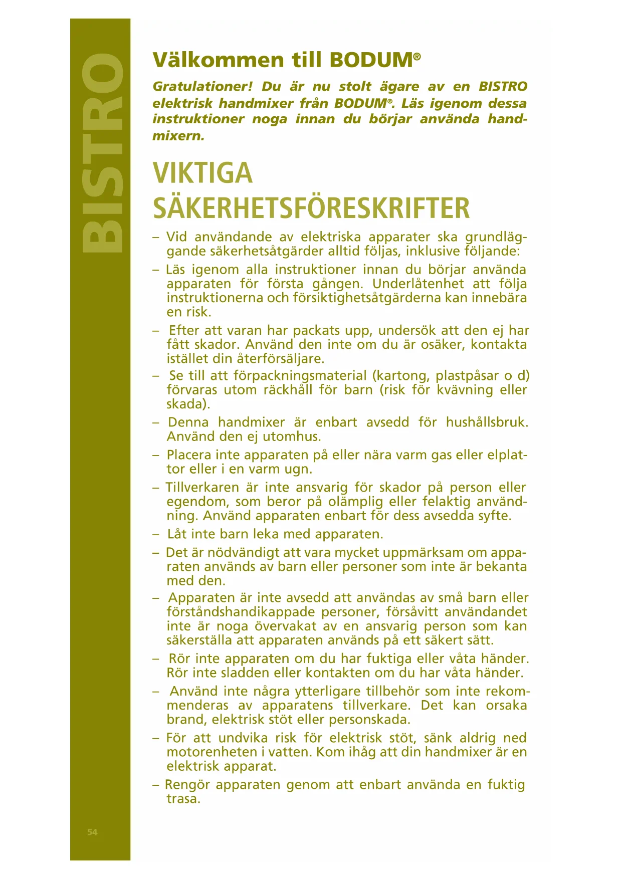 Gratulationer! Du är nu stolt ägare av en BISTRO elektrisk handmixer från BODUM