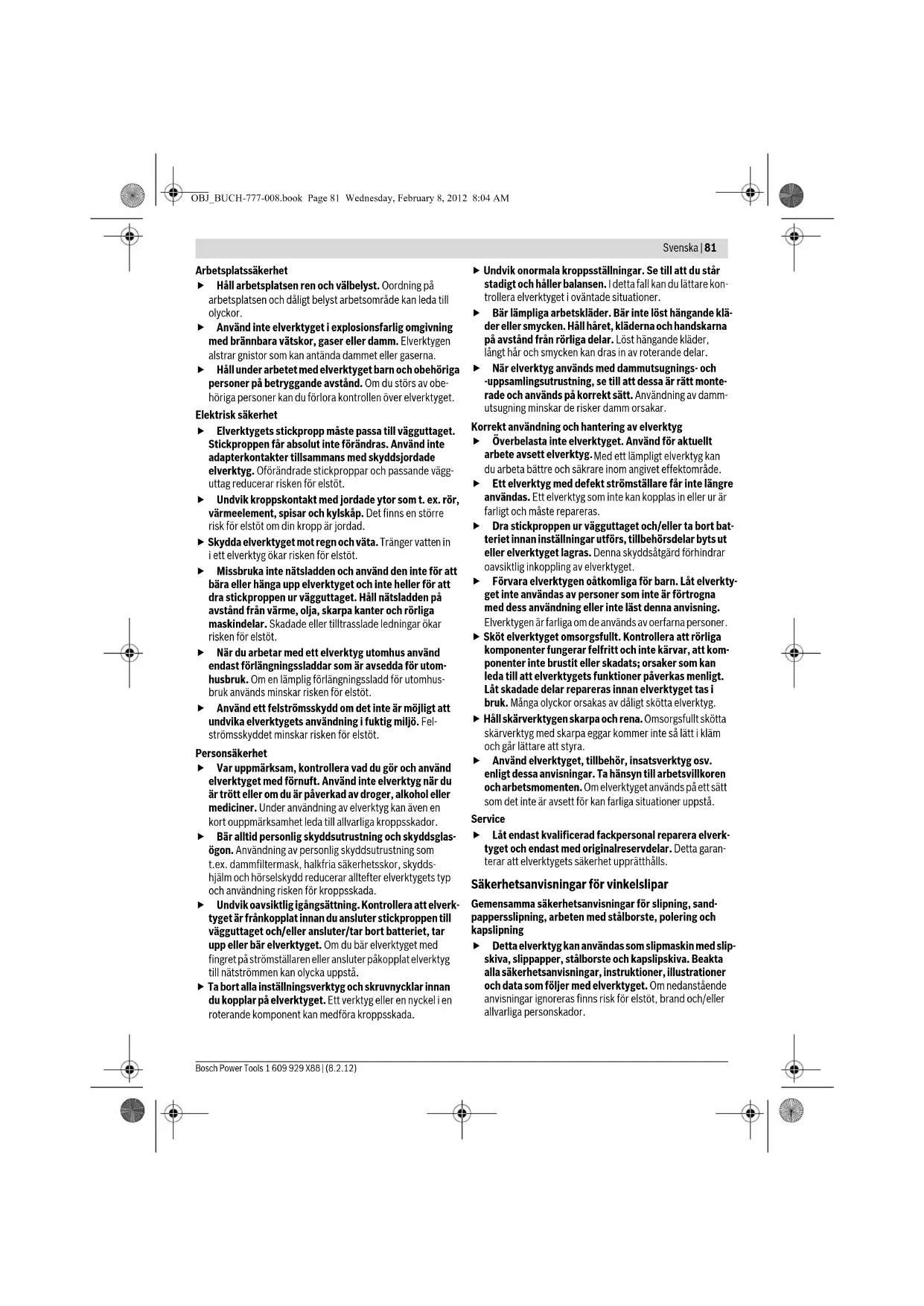 OBJ_BUCH-777-008.book Page 87 Wednesday, February 8, 2012 8:04 AM88 | Svenska 1 609 929 X88 | (8.2.12) Bosch Power Tools Kapning av metall