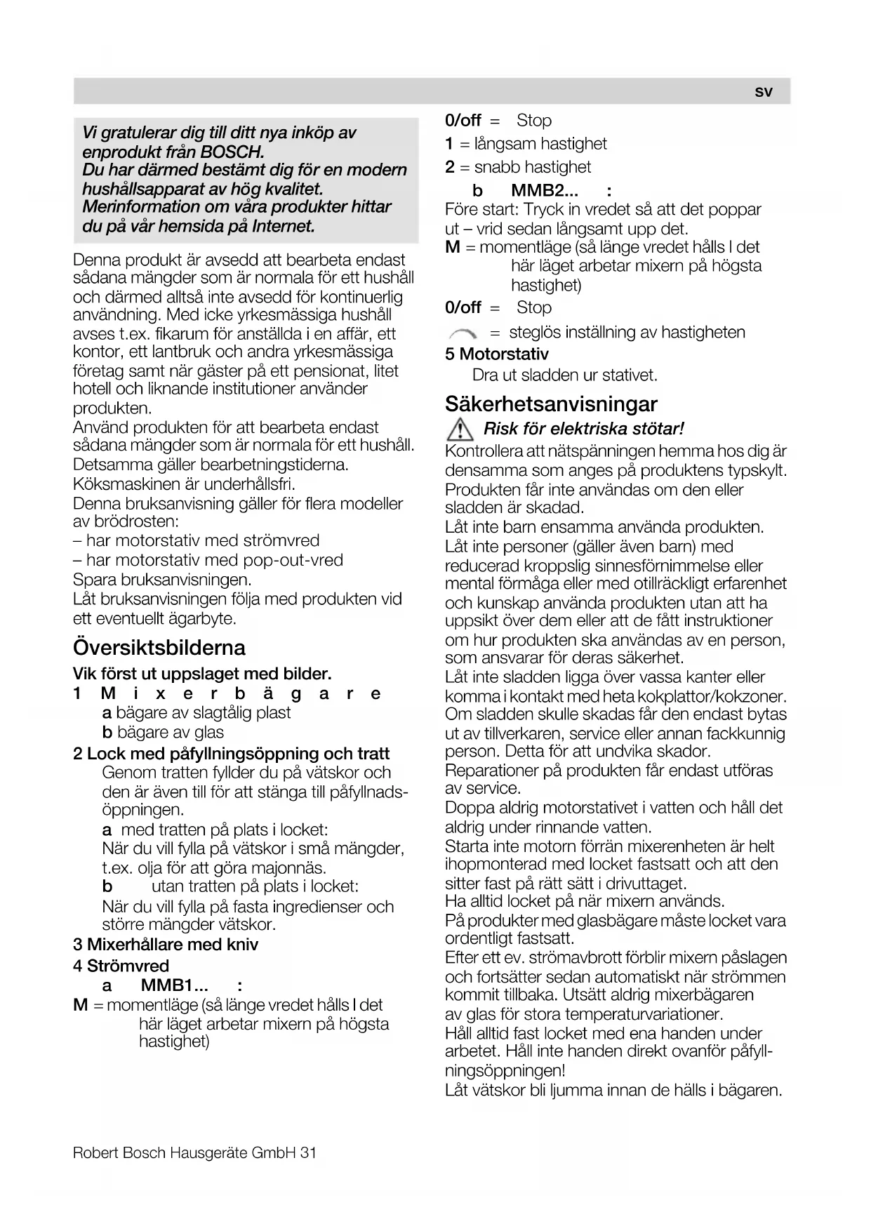 MMB2001 - Mixer BOSCH - Notice d'utilisation et mode d'emploi gratuit