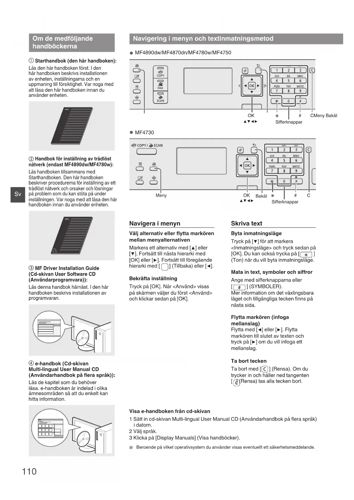 Navigering i menyn och textinmatningsmetod ● MF4890dw/MF4870dn/MF4780w/MF4750
