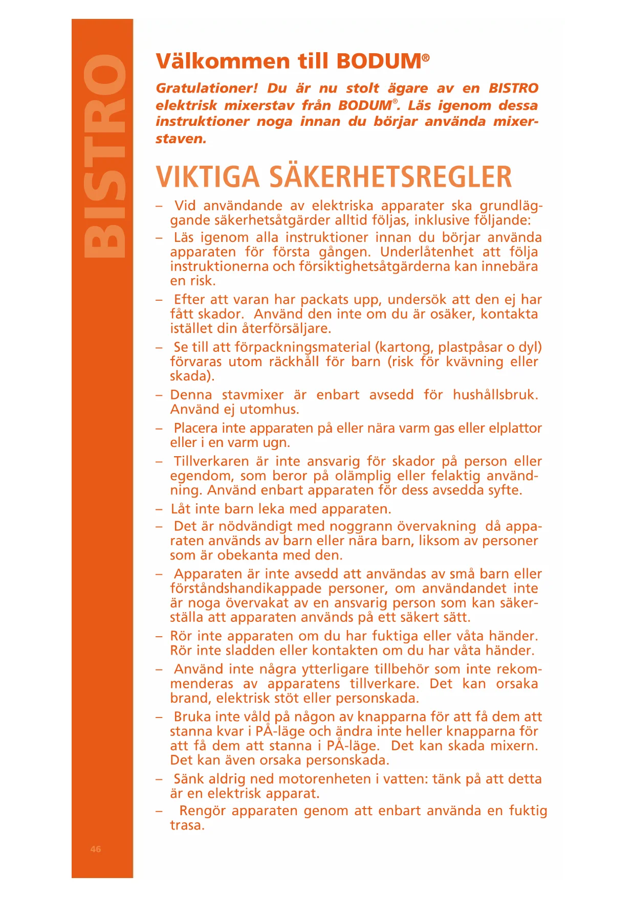 Gratulationer! Du är nu stolt ägare av en BISTRO elektrisk mixerstav från BODUM