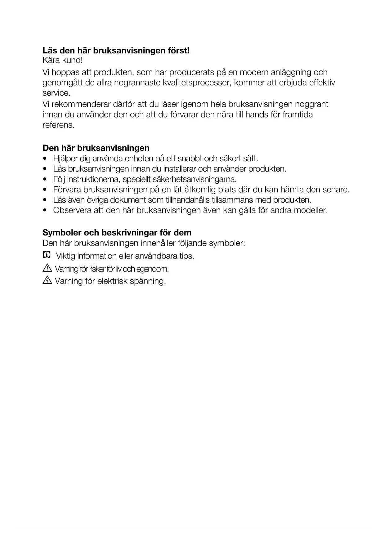 Vi rekommenderar därför att du läser igenom hela bruksanvisningen noggrant