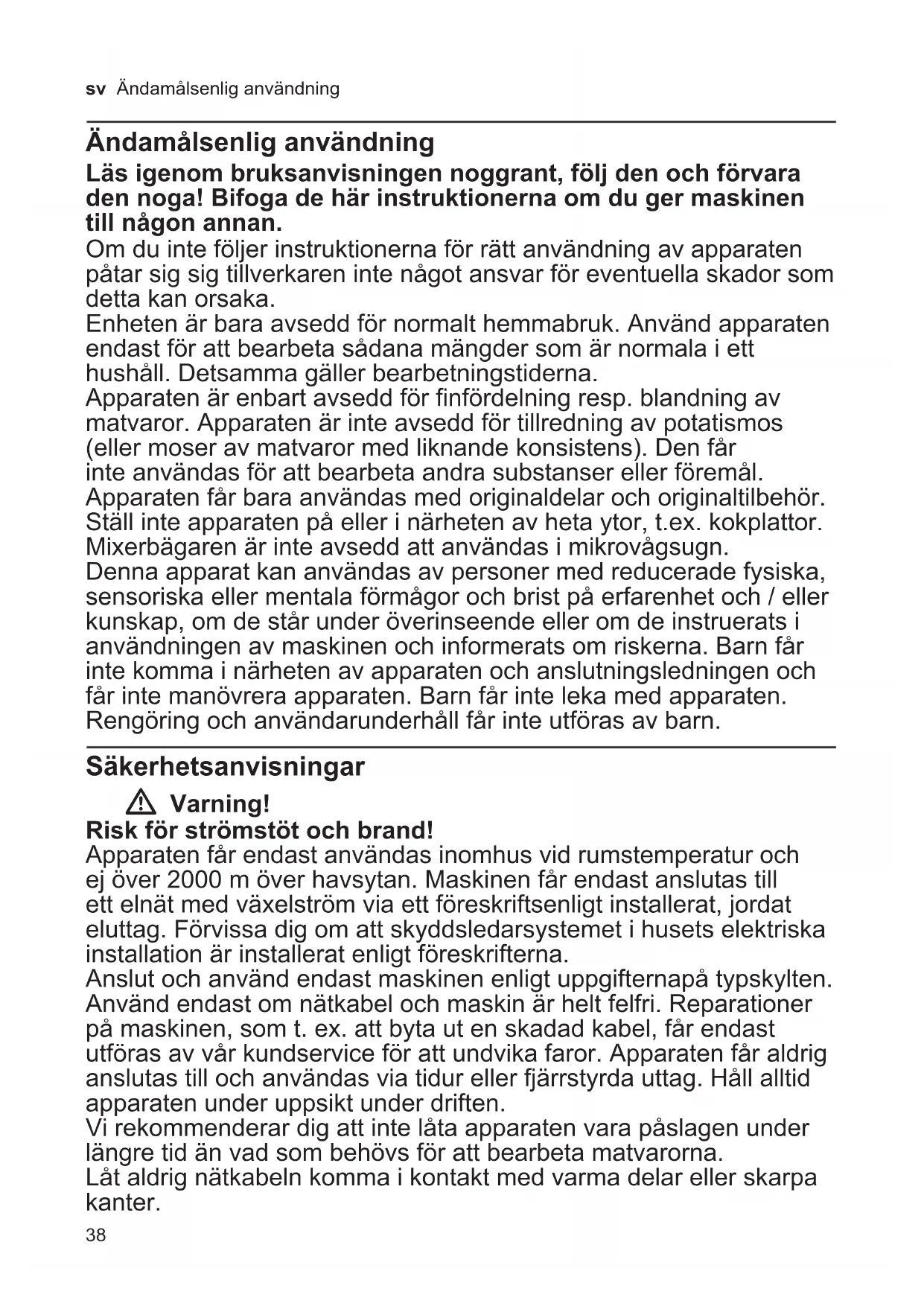 Ändamålsenlig användning 38