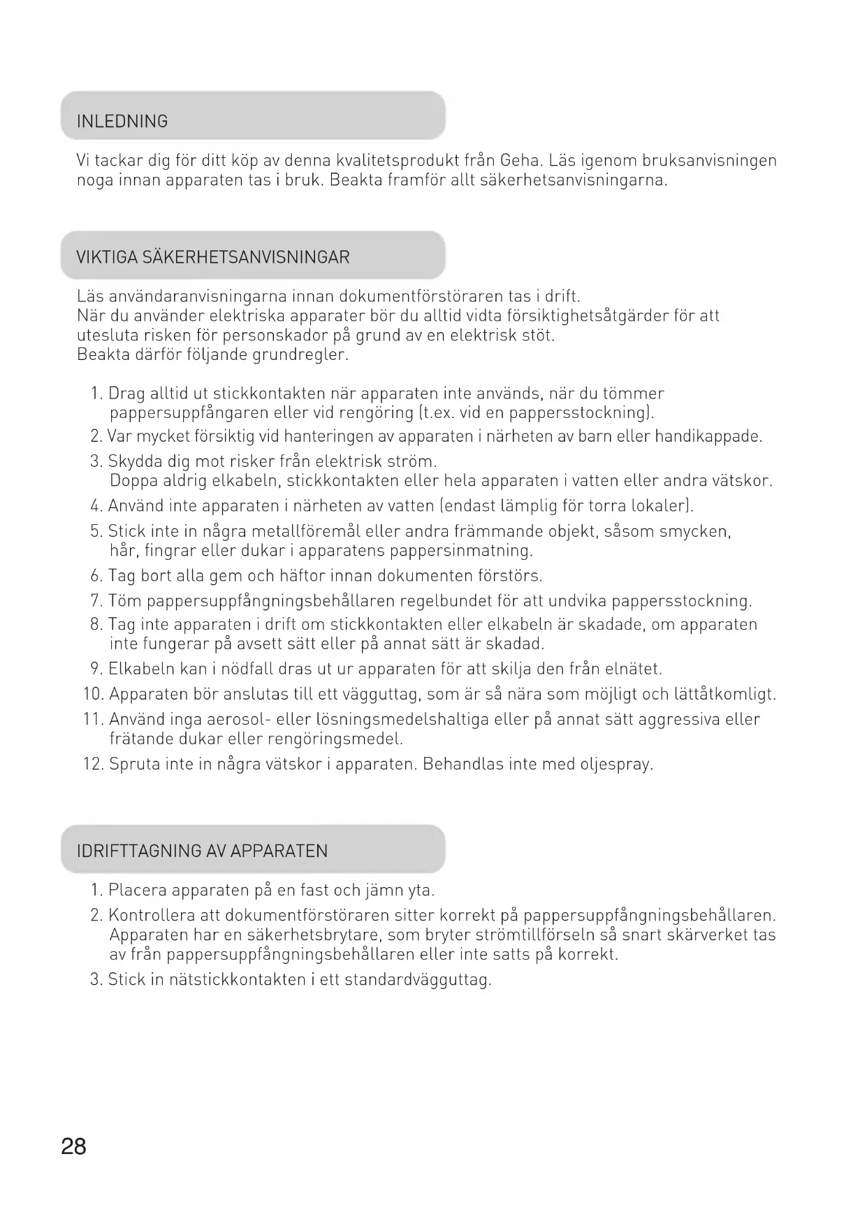 BRUKSANVISNING Home & Office X5 GEHA