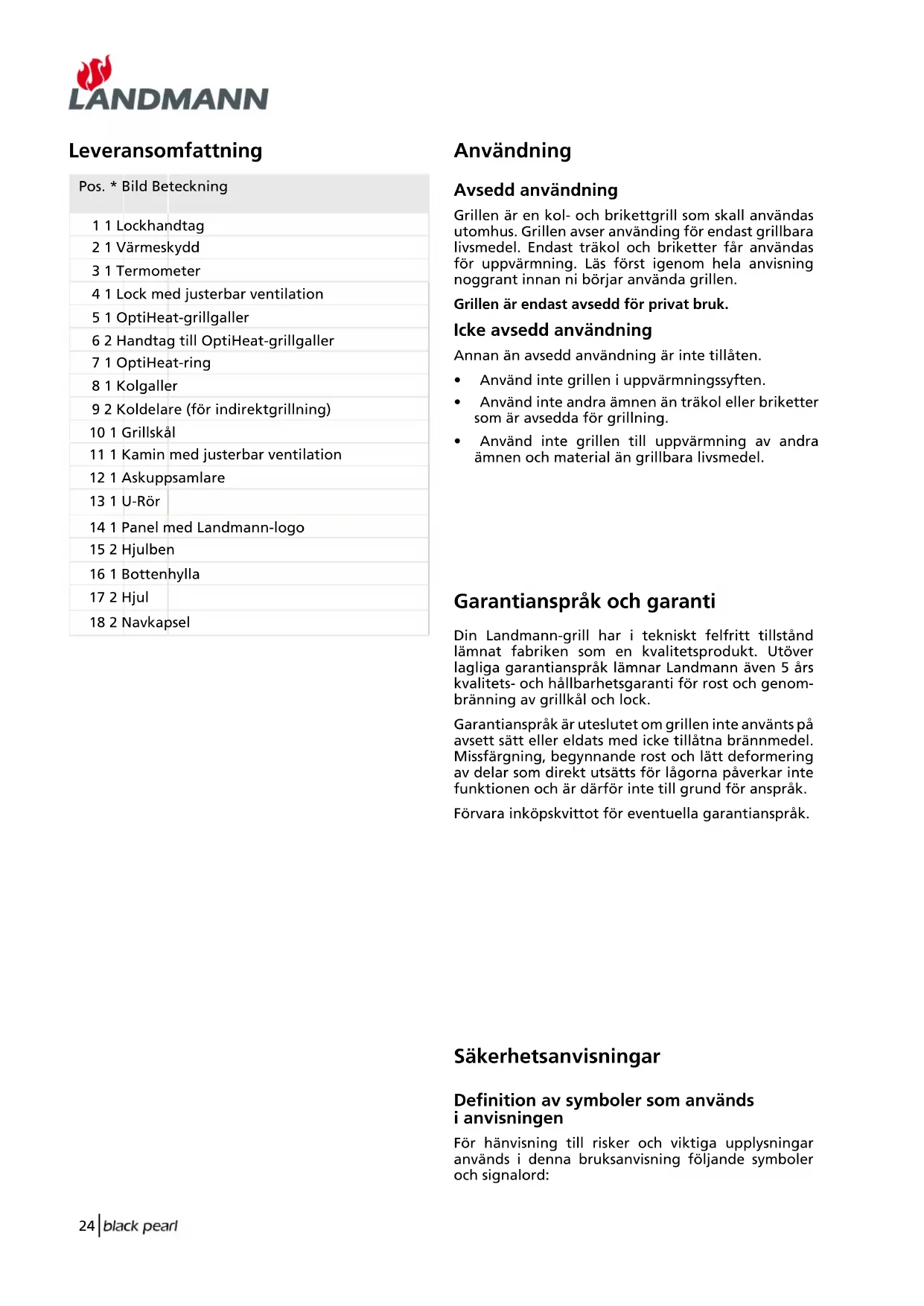 Din Landmann-grill har i tekniskt felfritt tillstånd