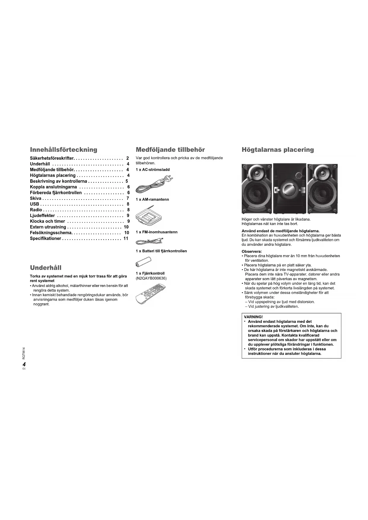 • Ta ur batteriet om du inte ska använda fjärrkontrollen