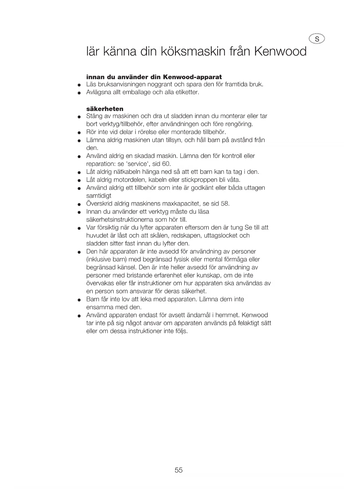 Använd apparaten endast för avsett ändamål i hemmet. Kenwood