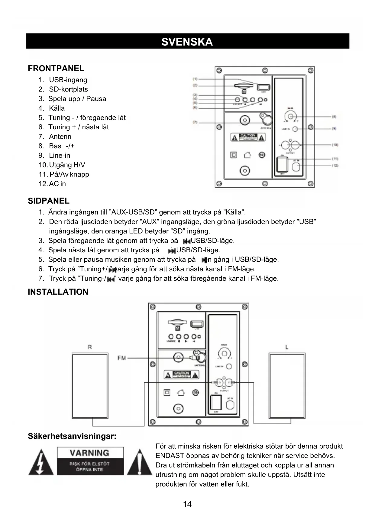3. Spela föregående låt genom att trycka på i USB/SD-läge.