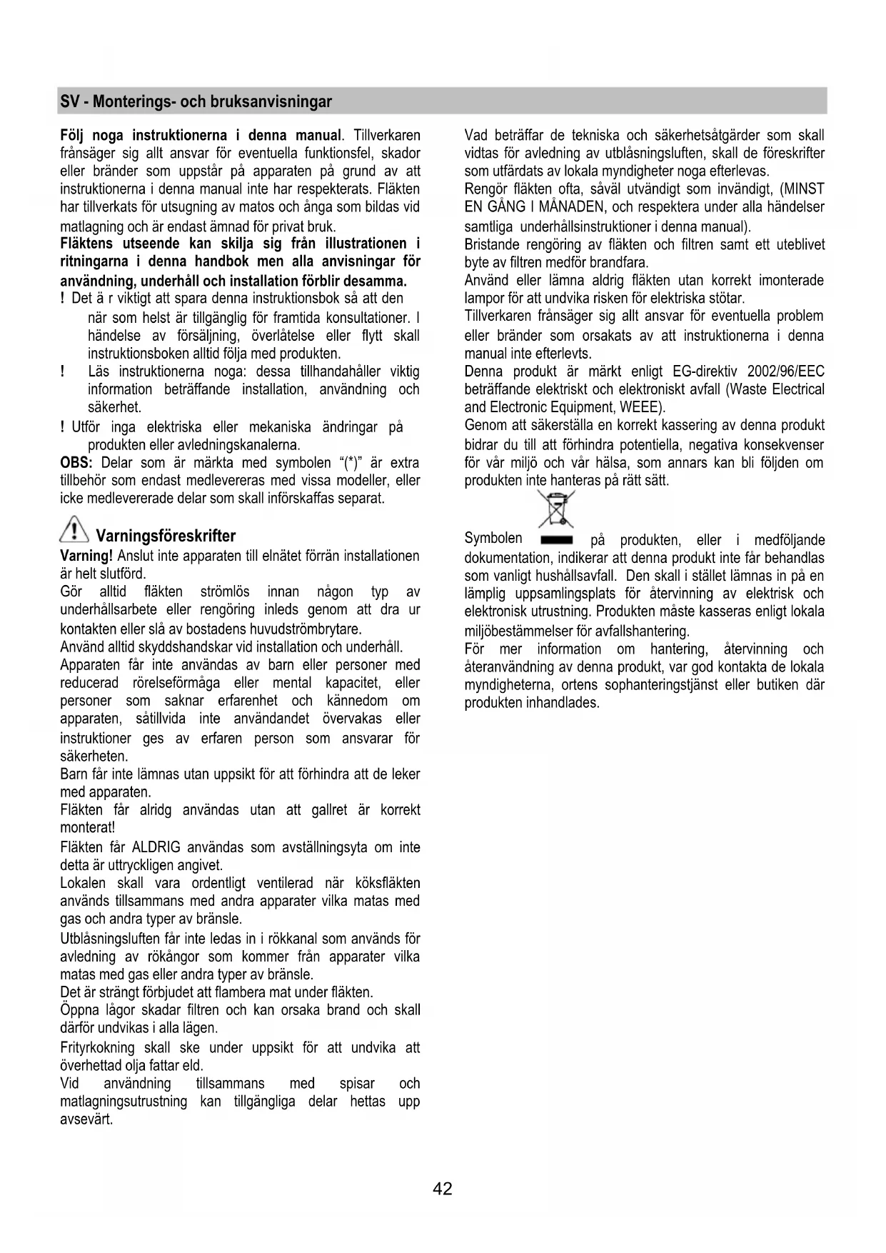 instruktionerna i denna manual inte har respekterats. Fläkten