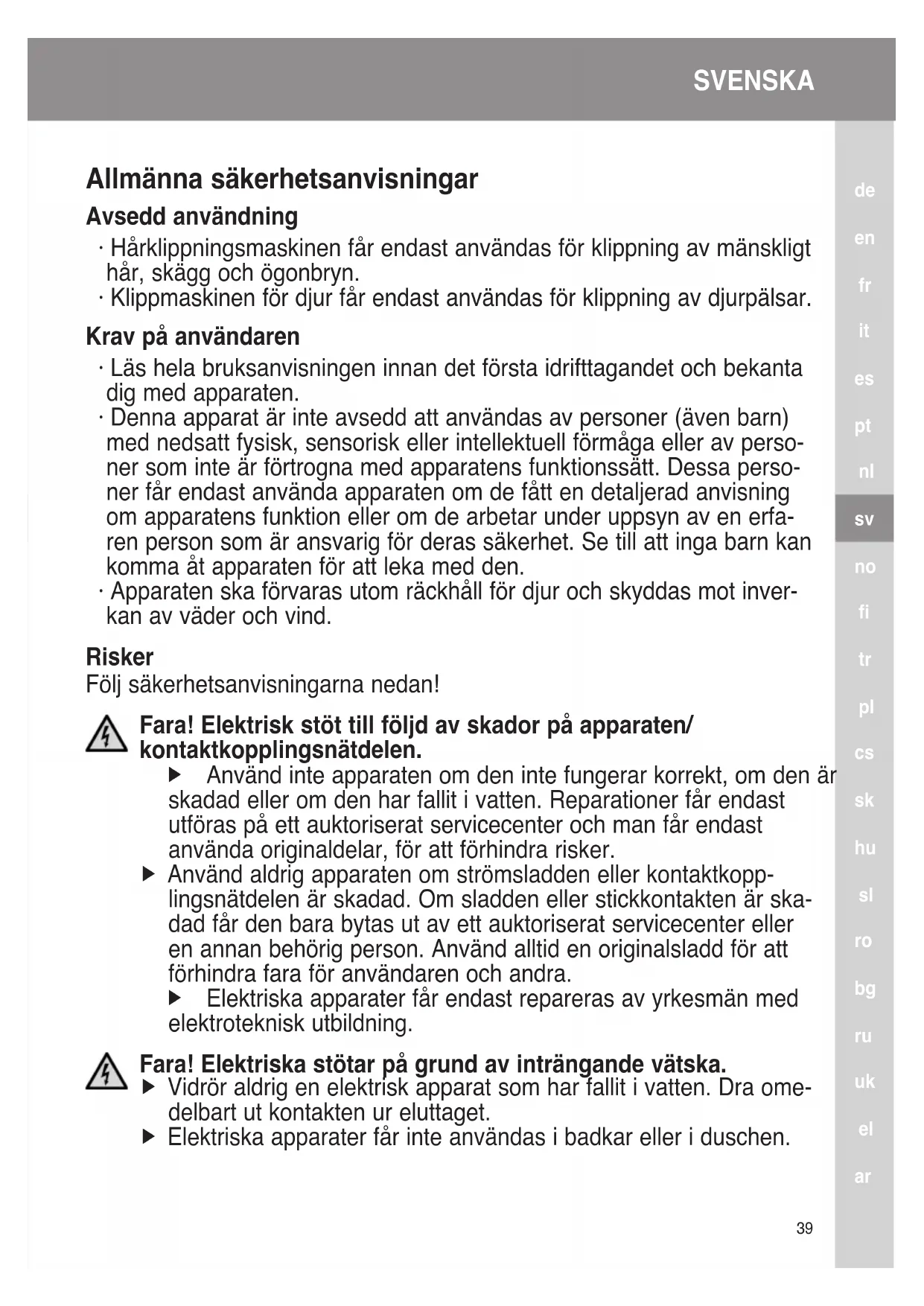 · Klippmaskinen för djur får endast användas för klippning av djurpälsar.
