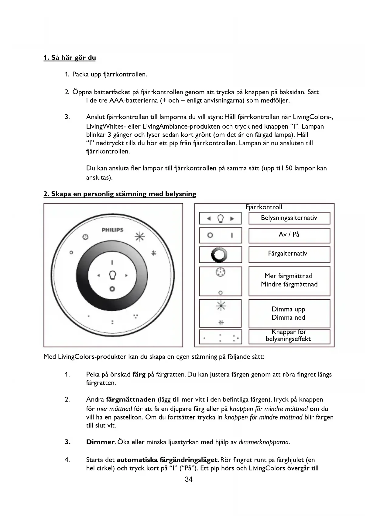 SV Tack för att du har köpt Philips LivingColors fjärrkontroll! Med den kan du ansluta olika Philips