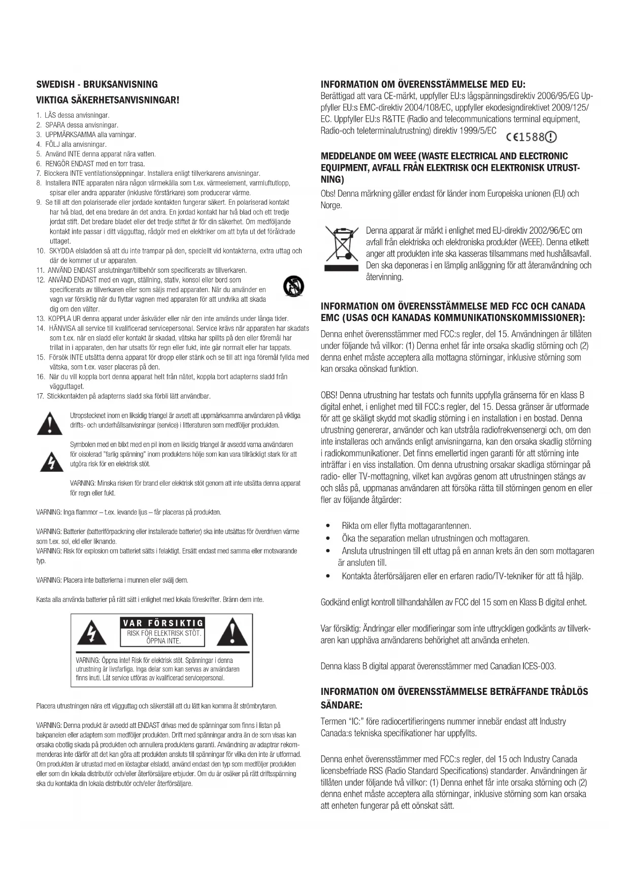 INFORMATION OM ÖVERENSSTÄMMELSE BETRÄFFANDE TRÅDLÖS SÄNDARE: