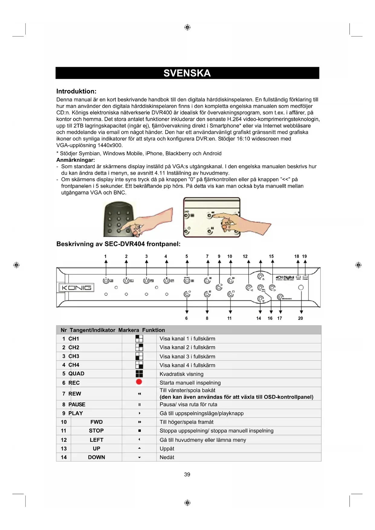 BRUKSANVISNING SECDVR404 KONIG