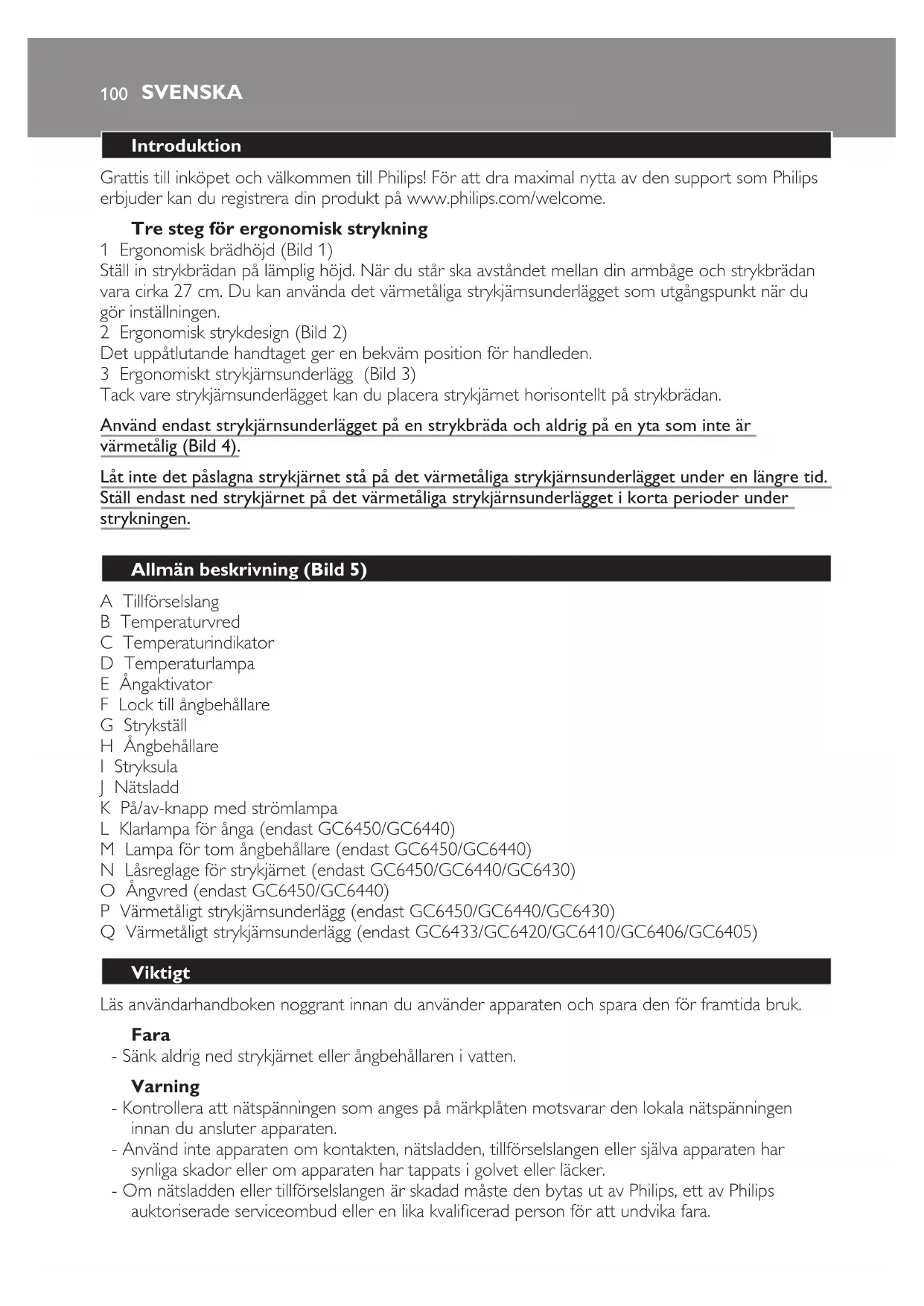 BRUKSANVISNING 6400 series GC6410 PHILIPS