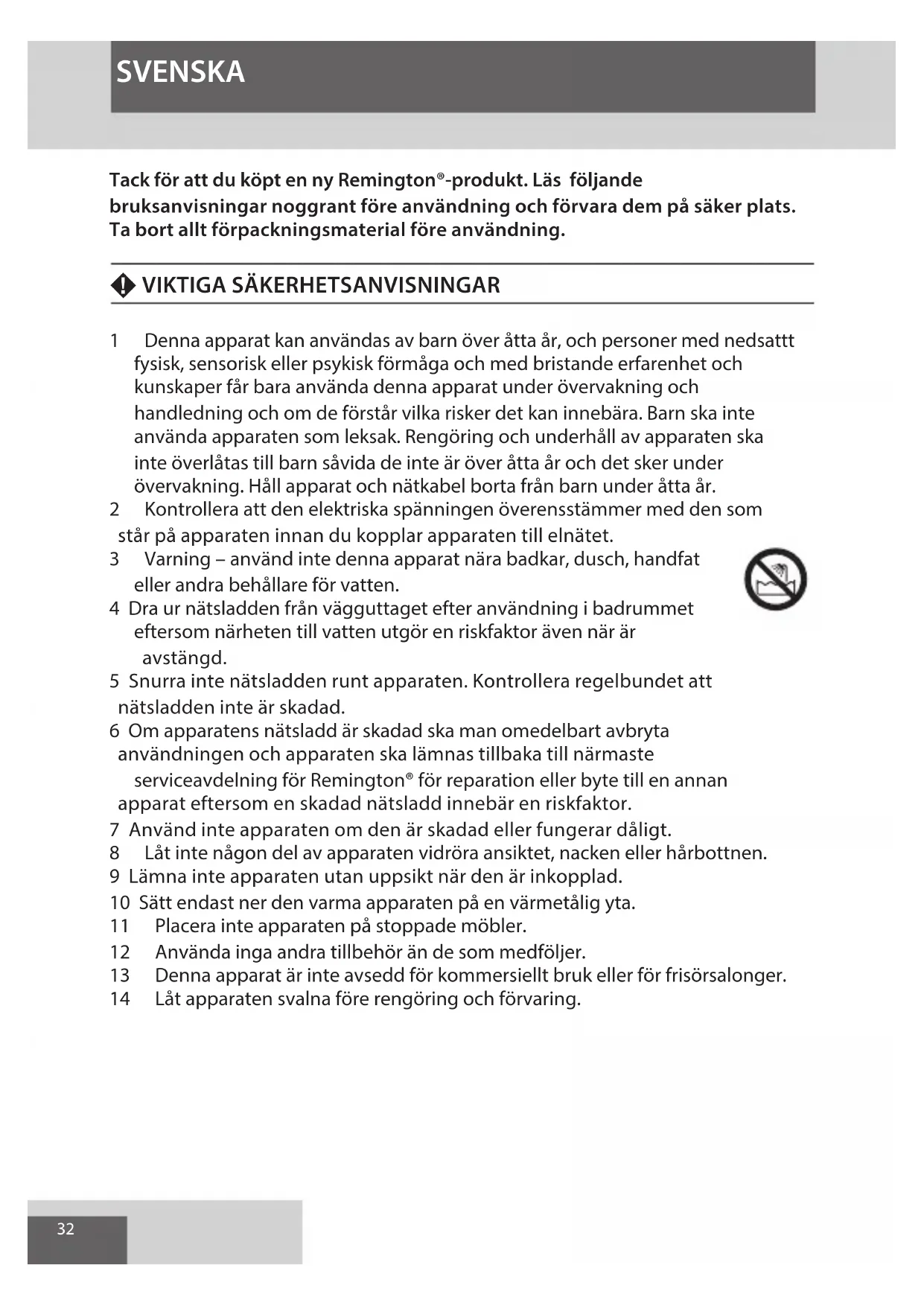 Tack för att du köpt en ny Remington®-produkt. Läs följande