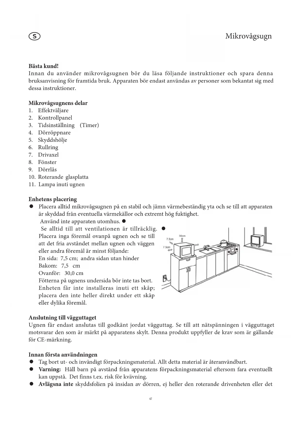 z Placera alltid mikrovågsugnen på en stabil och jämn värmebeständig yta och se till att apparaten