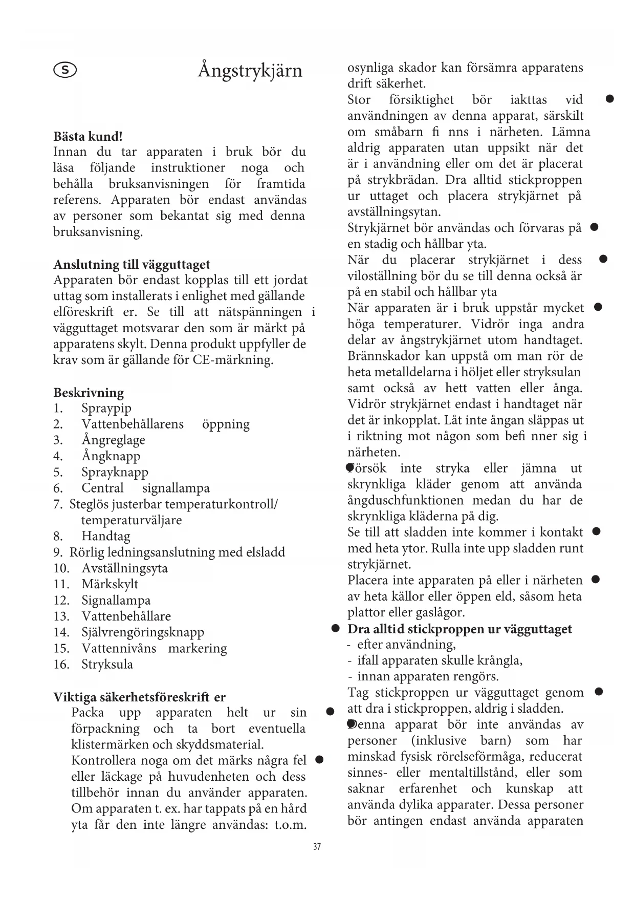 Stäng av ångstrykjärnet, dra stickproppen z