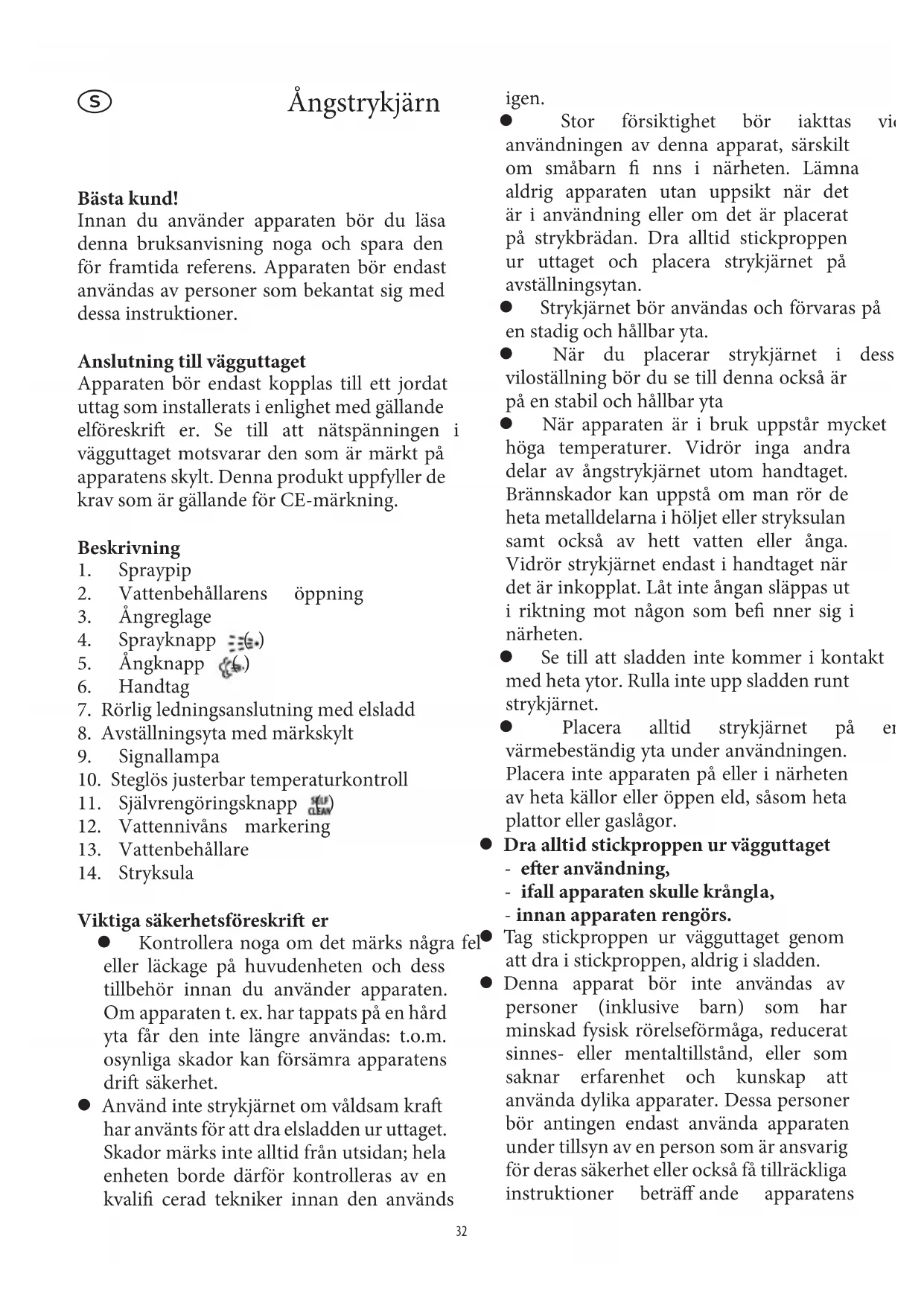 Strykjärnet bör användas och förvaras på