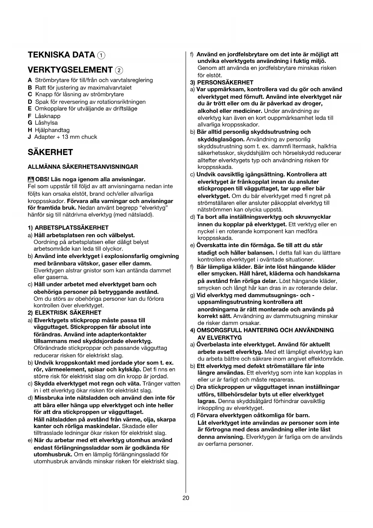 SÄKERHET ALLMÄNNA SÄKERHETSANVISNINGAR OBS! Läs noga igenom alla anvisningar.